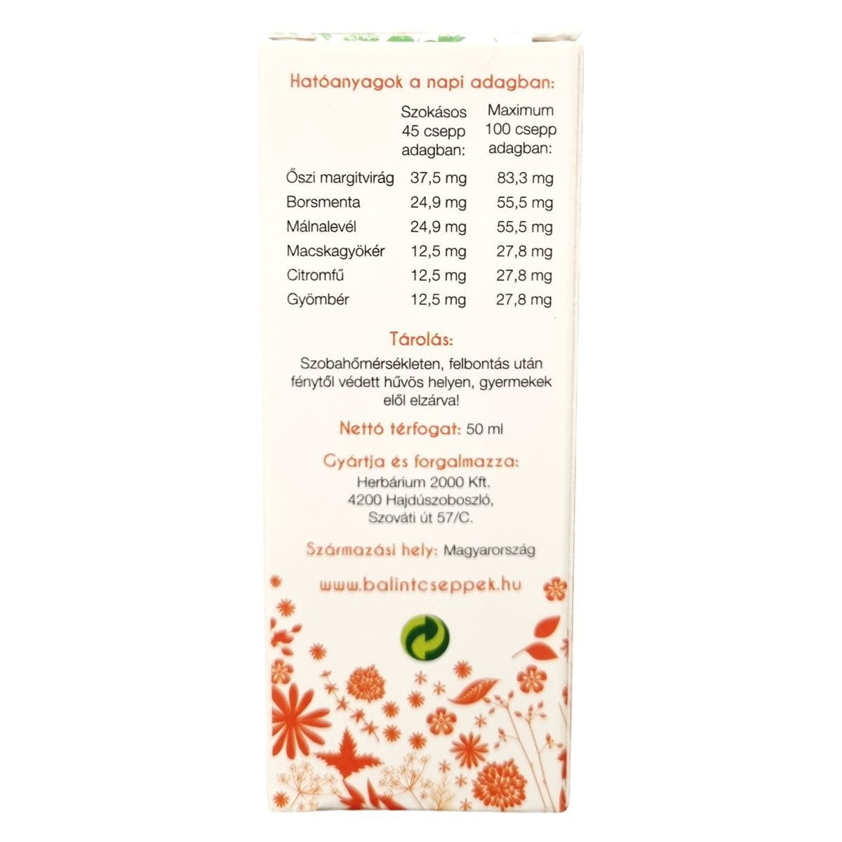 Bálint cseppek Őszi margitvirág cseppek 50ml leírása