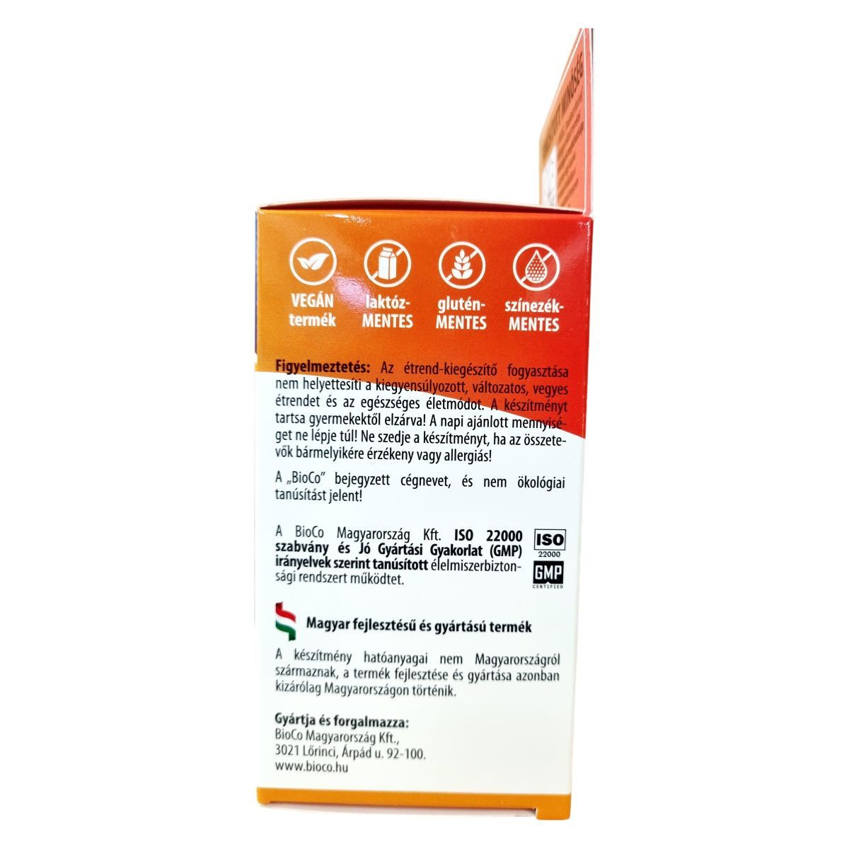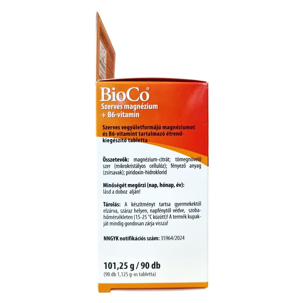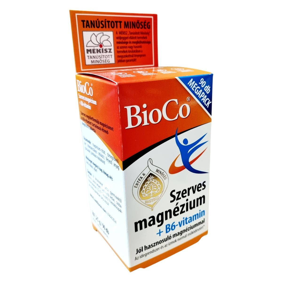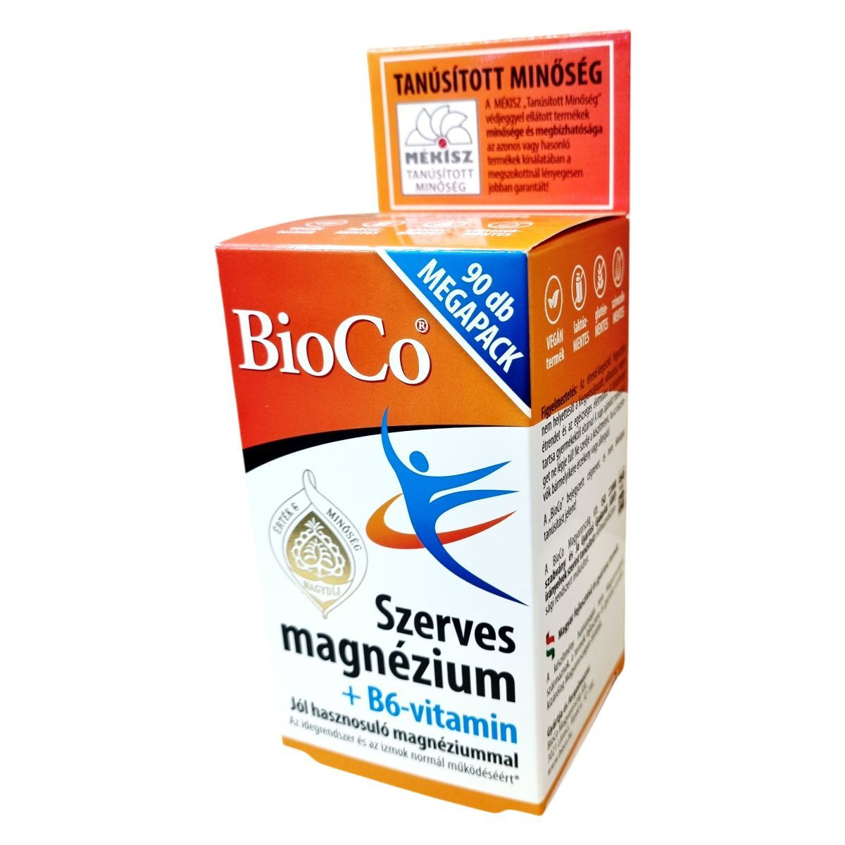 A BioCo® Szerves magnézium + B6-vitamin tabletta szerves vegyületformájú magnézium-citrátot és piridoxin-hidrokloridot, azaz B6-vitamint tartalmaz. A magnézium-citrát jó hasznosulással rendelkezik, amely az idegrendszer és izmok normál működésének támogatására szolgálhat, hozzájárulhat a fáradtság és kifáradás csökkentéséhez, valamint a normál pszichológiai funkció fenntartásához is. Emellett a magnézium részt vehet a normál csontozat és fogazat fenntartásában is. A termék vegán, laktóz-, glutén- és színezékmentes, így különböző étrendi igényeket is kiszolgálhat. Magyar fejlesztésű és gyártású készítmény, annak ellenére, hogy hatóanyagai nem Magyarországról származnak. A BioCo Magyarország Kft. az ISO 22000 szabvány és a Jó Gyártási Gyakorlat (GMP) irányelvek alapján működtet tanúsított élelmiszerbiztonsági rendszert, ami a termék minőségének és megbízhatóságának garanciája lehet. A termék fogyasztása nem helyettesíti a változatos étrendet és az egészséges életmódot, illetve az ajánlott adagolást nem szabad túllépni.
