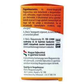 Az étrend-kiegészítő fogyasztása nem helyettesíti a kiegyensúlyozott, változatos, vegyes étrendet és az egészséges életmódot. A készítményt tartsa gyermekektől elzárva! A napi ajánlott mennyiséget ne lépje túl! Ne szedje a készítményt, ha az összetevők bármelyikére érzékeny vagy allergiás! A „BioCo” bejegyzett cégnevet, és nem ökológiai tanúsítást jelent!