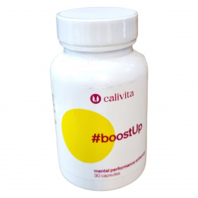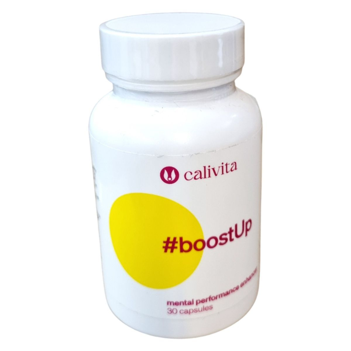 A Calivita #boostUp étrend-kiegészítő kapszula bakopa és foszfatidilszerin tartalmával készült, amely ayurvédikus segítséget nyújthat a memória és az egészséges agyi funkciók támogatására. A termék 30 kapszulát tartalmaz, melyek mindegyike 733 mg-os. Az összetevők között megtalálható a Ginkgo Biloba levél kivonat és a Kalcium-D-pantotenát is. A termék kizárólag természetes alapanyagokból készül, és a legszigorúbb gyártási feltételek mellett állítják elő. A termék forgalmazója a CF-NET Kft., székhelye Budapest, Aranykéz u. 6. A kapszulák fogyasztása nem ajánlott gyermekeknek, terhes és szoptató anyáknak, valamint gyógyszerszedés esetén orvosi konzultáció javasolt.