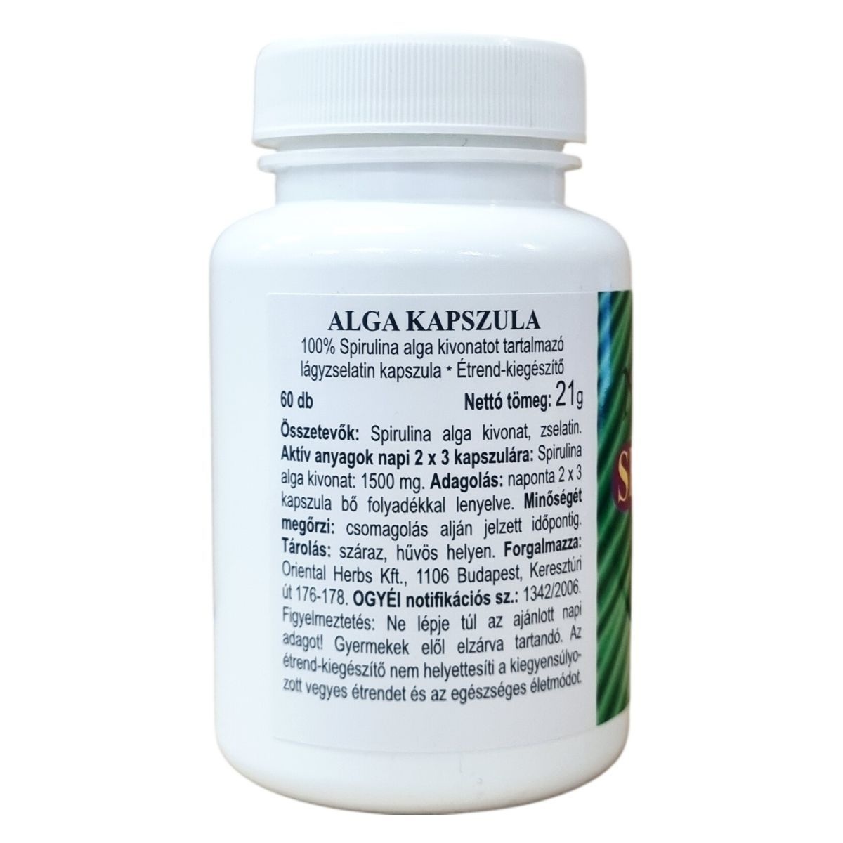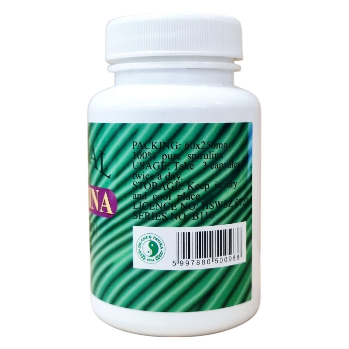 A Natural Spirulina kapszula egy 100% spirulina alga kivonatot tartalmazó étrend-kiegészítő, mely lágyzselatin kapszulában került forgalomba. Egy csomag 60 darab kapszulát tartalmaz, nettó tömege 21 gramm. A termék származási helye Kína. A készítmény adagolása napi kétszer három kapszula, amely bő folyadékkal ajánlott bevenni. A spirulina alga kivonat fontos összetevője a terméknek, mely a tápanyagok természetes forrása lehet. A csomagolás alján jelzett időpontig őrzi meg minőségét. A termék megőrzése érdekében száraz és hűvös helyen kell tárolni. A termék a nevében is feltüntetve természetes algát tartalmaz, amit Kína területén állítanak elő, és az OGYÉI által bejegyzett notifikációs számmal forgalmazzák. A készítmény nem helyettesíti a kiegyensúlyozott étrendet és az egészséges életmódot, továbbá nem szabad túllépni az ajánlott napi adagot, valamint gyermekektől elzárva kell tartani.