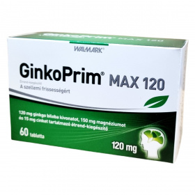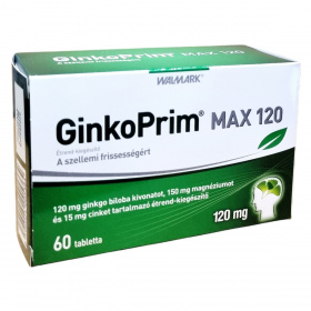 GinkoPrim MAX 120mg tabletta 60 db, amely hosszabb távon segíti a szellemi frissességet és koncentrációt.