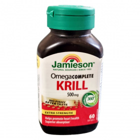 A Jamieson Omegacomplete Krill kapszula 500 mg tiszta Euphausia superba rákolajat tartalmaz, amely kisméretű, könnyen lenyelhető kapszulákban érhető el, kellemetlen hal utóíz nélkül. A termék célja, hogy támogassa a szív egészségét és a normál agyműködést, valamint a látás fenntartását. Az EPA és a DHA zsírsavak hozzájárulhatnak az optimális szívműködéshez, a kedvező hatás 250 mg EPA és DHA napi bevitelével érhető el. A termék minőségét a csomagoláson feltüntetett időpontig őrzi meg.