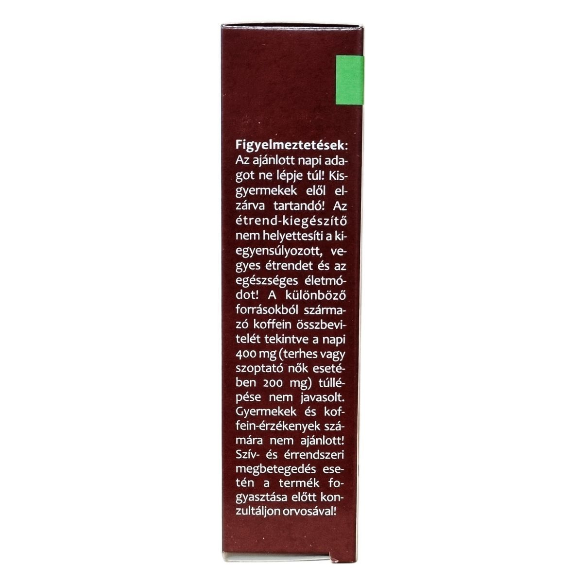 Ez az étrend-kiegészítő koffeintartalmával fokozza az éberséget és segíti a koncentrációt szellemi megterhelés alatt. Egy tabletta egy csésze kávénak felel meg, így praktikus választás a mindennapi energiaszint fenntartásához.