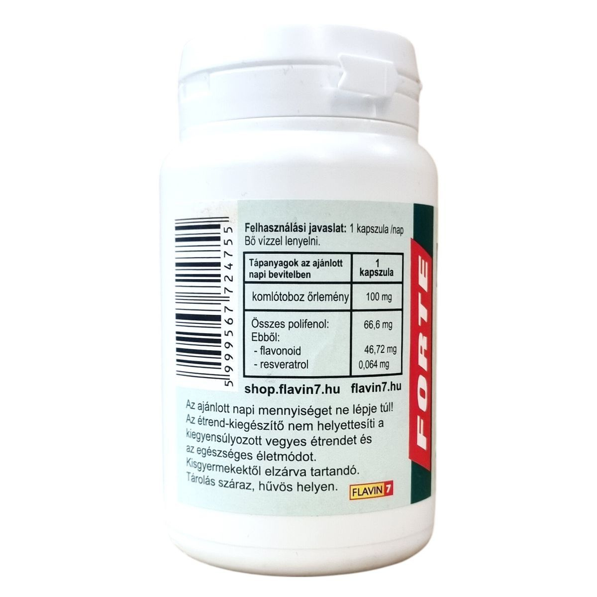 A FORTE RELAXETIN kapszula 60 darabos kiszerelésű étrend-kiegészítő, amely a Flavin7 bioflavonoid komplexet és komlótoboz őrleményt tartalmaz, így hozzájárulhat a szervezet polifenoljainak pótlásához. A készítményben található bioflavonoidok különböző gyümölcsök és maghéjak szárítmányaiból származnak, beleértve a vörösszőlő mag-héjat, cirok mag-héjat, feketeszedret, feketecseresznyét, feketeribizlit, pirosribizlit, szilvát és almát. A termék komlótoboz őrleményt is tartalmaz, amelyet a Humulus lupulus L. fajból nyernek. A kapszula zselatinból készül, és nettó tömege 22,6 gramm (60 x 376 mg). Az étrend-kiegészítő alkalmazása során ajánlott a napi 1 kapszula fogyasztása, bő vízzel lenyelve. A termék nem helyettesíti a kiegyensúlyozott étrendet és az egészséges életmódot, a fogyasztását gyermekektől elzárva, száraz és hűvös helyen kell tárolni.
