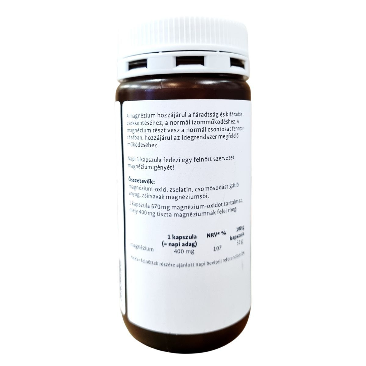 A készítmény 1 kapszulája 670 mg magnézium-oxidot tartalmaz, amely 400 mg tiszta magnéziumnak felel meg. Napi 1 kapszula fedezi egy felnőtt szervezet magnéziumigényét. A magnézium hozzájárul a normál csontozat fenntartásához és a normál izomműködéshez.