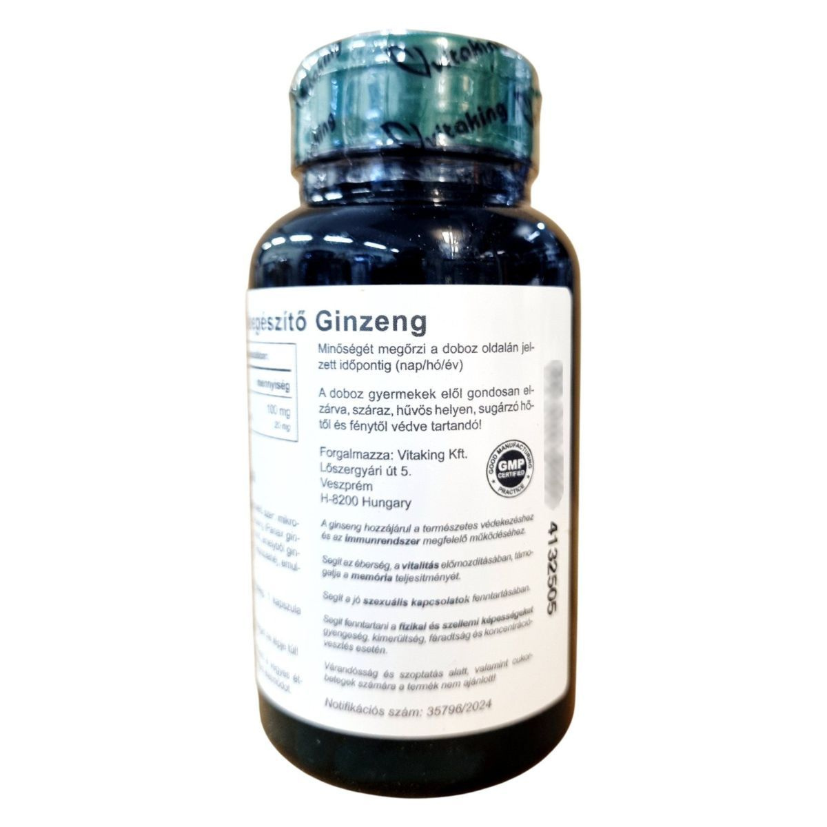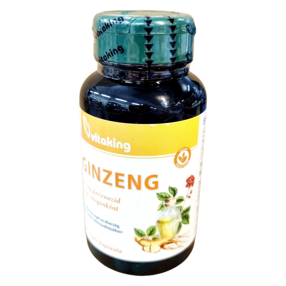 A Vitaking Ginzeng étrend-kiegészítő kapszulánként 100 mg ginzeng kivonatot tartalmaz, amelyből 20 mg ginzenozid. A ginzeng hozzájárulhat a természetes védekezéshez és az immunrendszer megfelelő működéséhez, segíthet az éberség és a vitalitás előmozdításában, valamint támogathatja az emlékezet és az emória teljesítményét. A termék segíthet a jó szexuális kapcsolatok fenntartásában, és hozzájárulhat a fizikai és szellemi kapacitás karbantartásához. A kapszulák vegán étrendbe illeszthetők, és a termék használata során fontos, hogy a napi ajánlott mennyiséget ne lépjük túl.