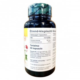 tömegnövelő szer: mikrokristályos cellulóz, Ginzeng (Panax ginseng) (szár, levél) kivonat, amelyből ginzenozid 20%, pullulán kapszulahéj, emulgeálószer: zsírsavak