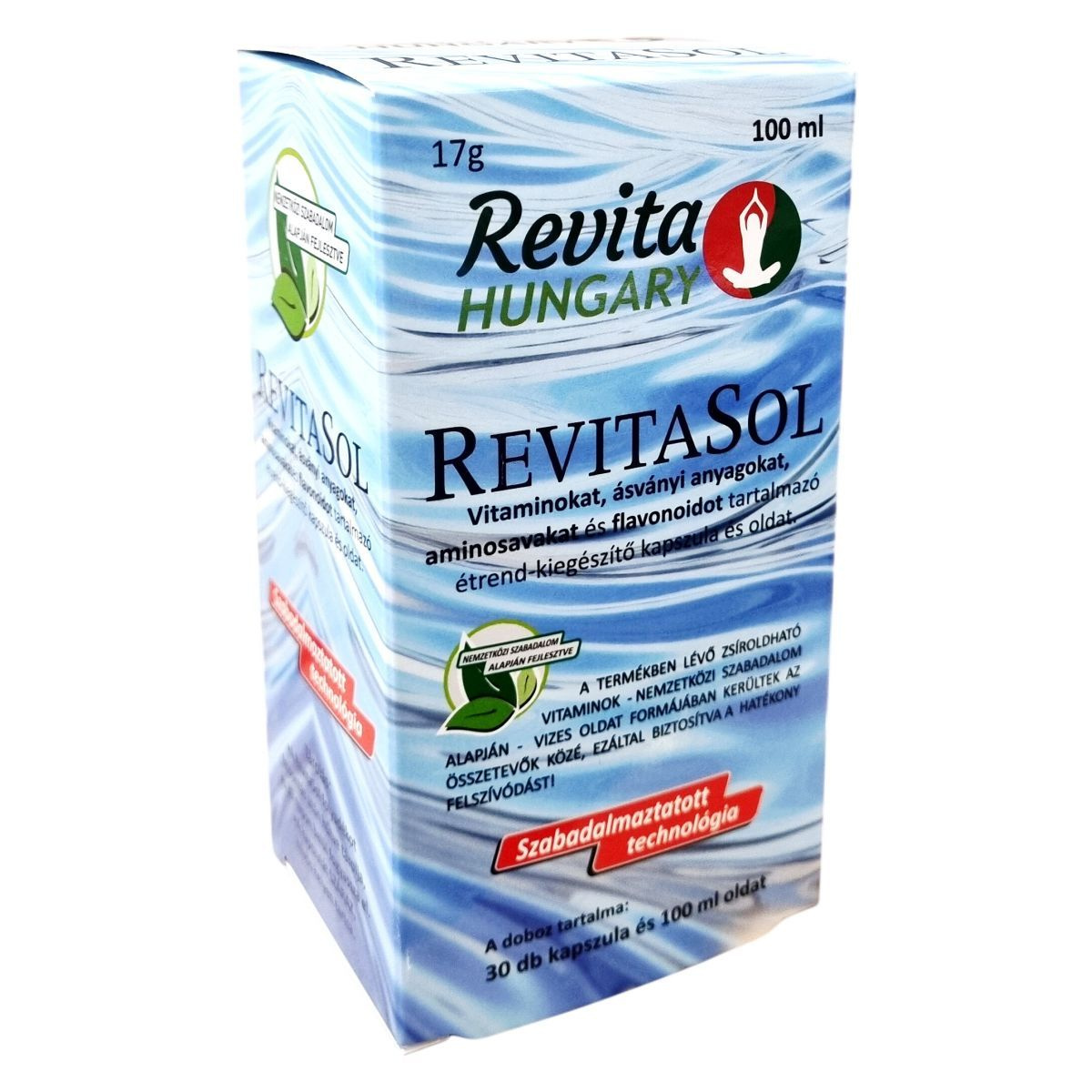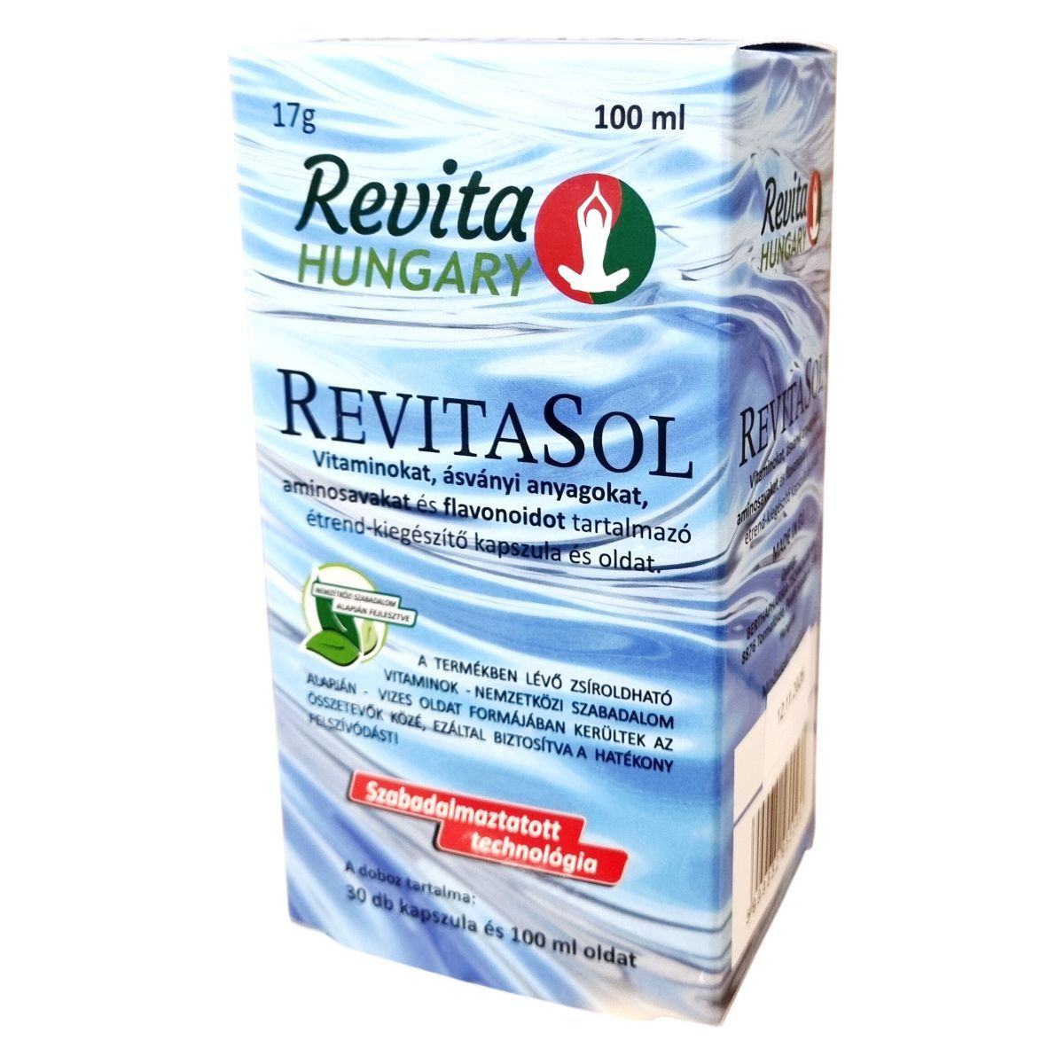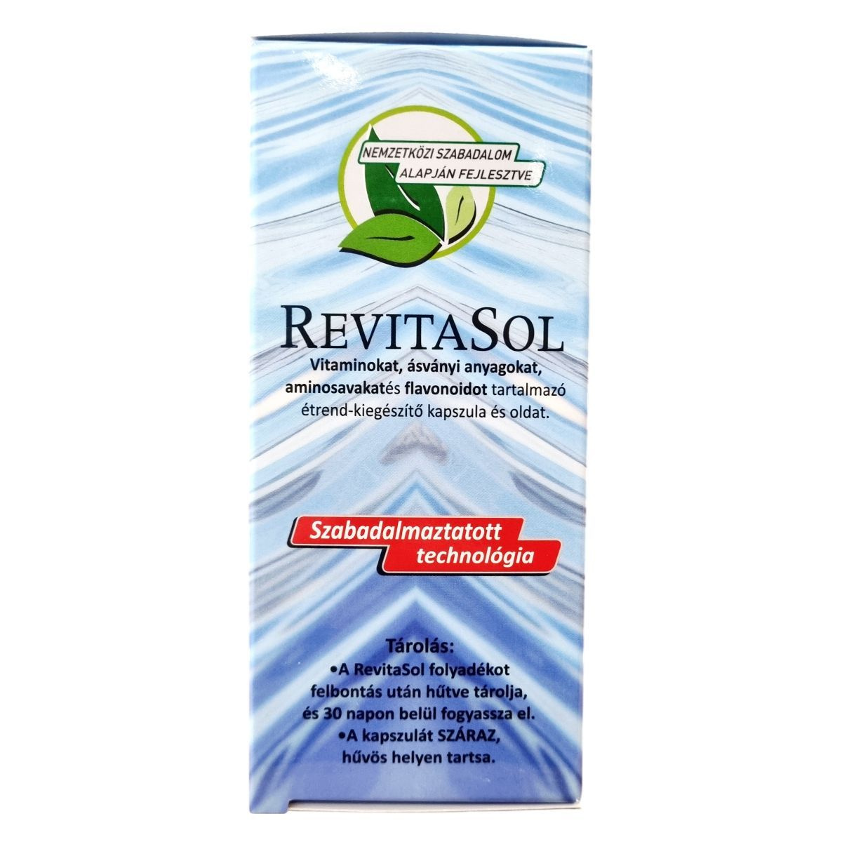 A RevitaSol termék egy szabadalmaztatott technológiával készült étrend-kiegészítő, amely egyesíti a vitaminok, ásványi anyagok, aminosavak és flavonoidok előnyeit. A zsírban oldódó vitaminok nemzetközi szabadalom alapján vizes oldat formájában kerülnek a készítménybe, így támogatva a hatékony felszívódást. A csomagolás 30 darab kapszulát és 100 ml oldatot tartalmaz. Az adagolás során egy evőkanál folyadékot és egy kapszulát ajánlott közvetlenül az első napi étkezés előtt fogyasztani. A termék nem helyettesíti a vegyes étrendet és az egészséges életmódot. A folyadékot felbontás után hűtve kell tárolni és 30 napon belül el kell fogyasztani, a kapszulát pedig száraz, hűvös helyen kell tartani. A termék az Európai Unióban készül, gyártója a BERTHAPHARMA-TECHNOLOGY Kft. Tormaföldén.