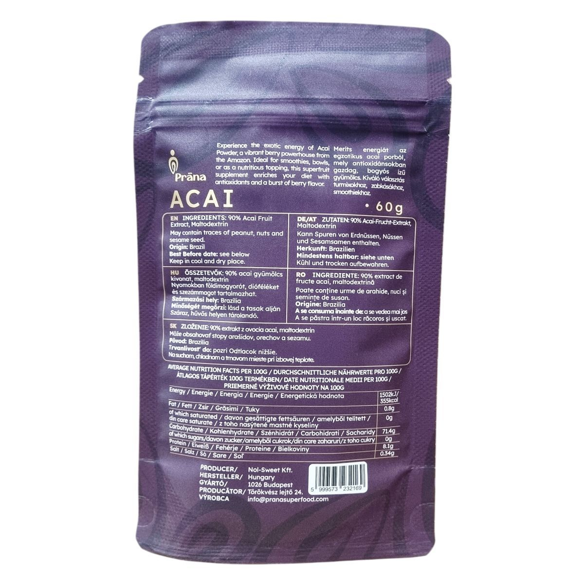 Összetevők: 90% acai kivonat, maltodextrin