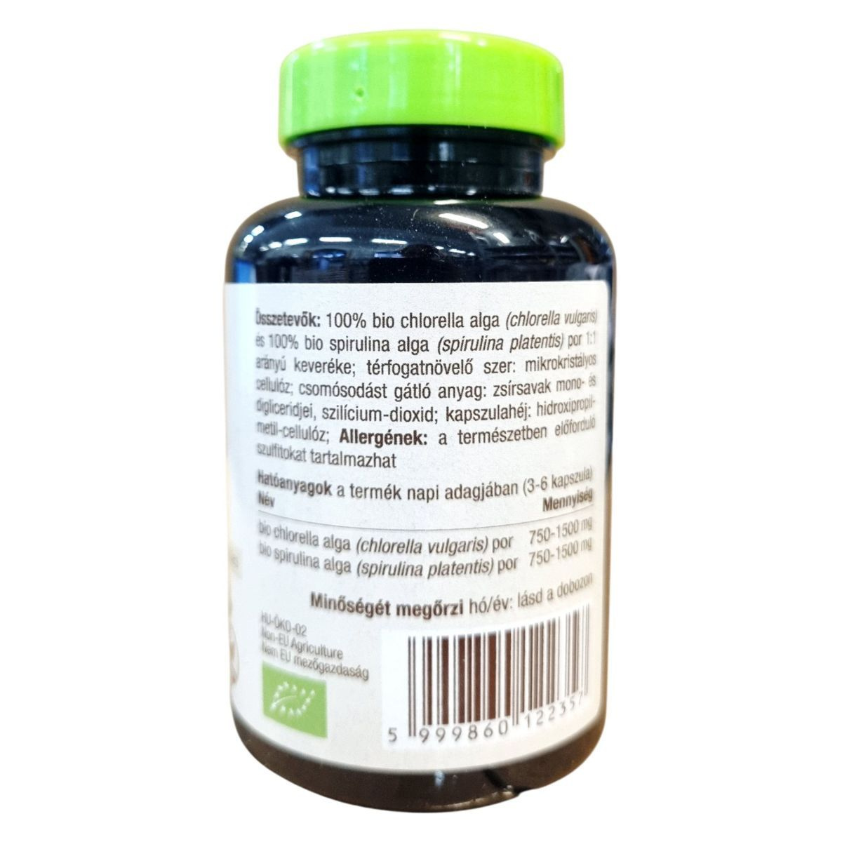 Ez a termék bio chlorella és spirulina algák keverékét tartalmazza, amelyek hozzájárulhatnak az egészséges életmód támogatásához. A kapszulák 100% tiszta, organikus összetevőkből készülnek.
