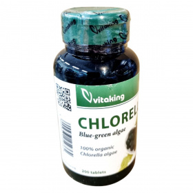 A Vitaking Chlorella alga tabletta 100% organikus chlorella algát tartalmaz, amely a Chlorella vulgaris fajból származik. A termék 200 tablettát tartalmaz, melyek együttes nettó tömege 100 g. A chlorella alga por gazdag fehérjében és karotinoidokban, amelyek hozzájárulhatnak a szervezet természetes méregtelenítő folyamataihoz és támogathatják az immunrendszert. A termék bio minősítéssel rendelkezik, és a napi ajánlott mennyiség 3 g, amely 6 tablettának felel meg. A termék tárolása száraz, hűvös helyen javasolt, sugárzó hőtől és fénytől védve.