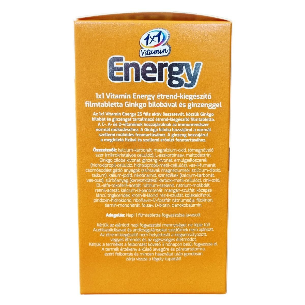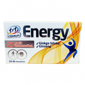 Az 1×1 Vitamin Energy 25 féle aktív összetevőt, köztük ginkgo bilobát és ginzenget tartalmazó étrend-kiegészítő filmtabletta.