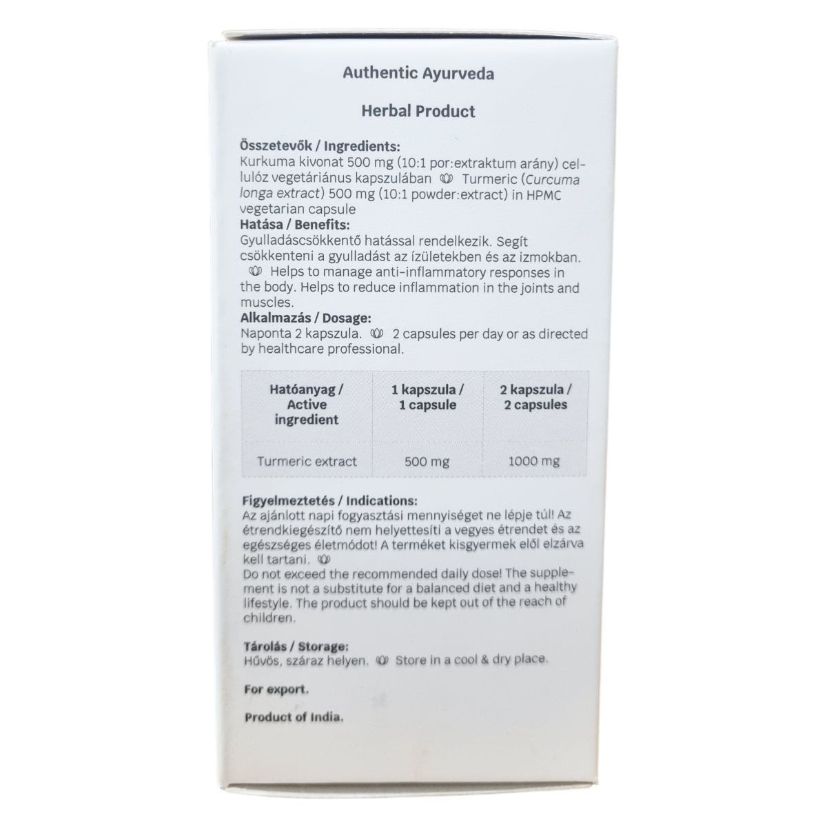 Kurkuma kivonat 1000 mg napi adagban (2 kapszula).