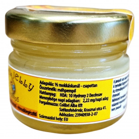 A ROYAL JELLY méhpempő egy 100% természetes étrendkiegészítő, amelyet a Colibri Alba Kft forgalmaz. A termék fő hatóanyaga a HDA (10 Hydroxy 2 Decénsav), amely napi adagban 2,22 mg mennyiségben található meg. A termék EU-ból származik, és különösen ajánlott lehet azok számára, akik szeretnék támogatni immunrendszerüket. Fontos, hogy a javasolt napi adagot ne lépjük túl, és a terméket kisgyermekek elől elzárva tároljuk. Az étrendkiegészítő nem helyettesíti a vegyes étrendet, és nem javasolt méhészeti termékekre, virágporra allergiás személyek, valamint vesebetegek számára.