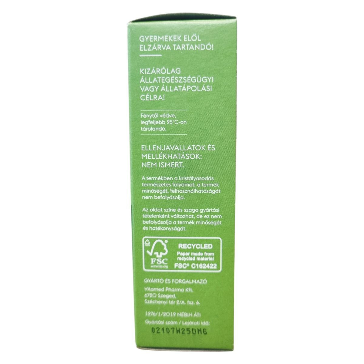 Gyermekek elől elzárva tartandó! Kizárólag állategészségügyi vagy állatápolási célra! Ellenjavallatok és mellékhatások nem ismertek.