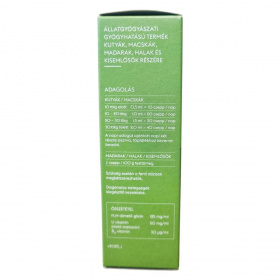 Kutyák és macskák: 10 testtömegkilogramm (ttkg) alatt 0,5 ml (10 csepp)/nap, 10-20 ttkg között 1,0 ml (20 csepp)/nap, 20-30 ttkg között 1,5 ml (30 csepp)/nap, 30 ttkg felett 2,0 ml (40 csepp)/nap. A napi adagot ajánlott két részre osztva, táplálékhoz keverve beadni. Madarak, halak és kisemlősök esetén 1 csepp / 100 g testtömeg. Szükség esetén a dózisok megkétszerezhetők.