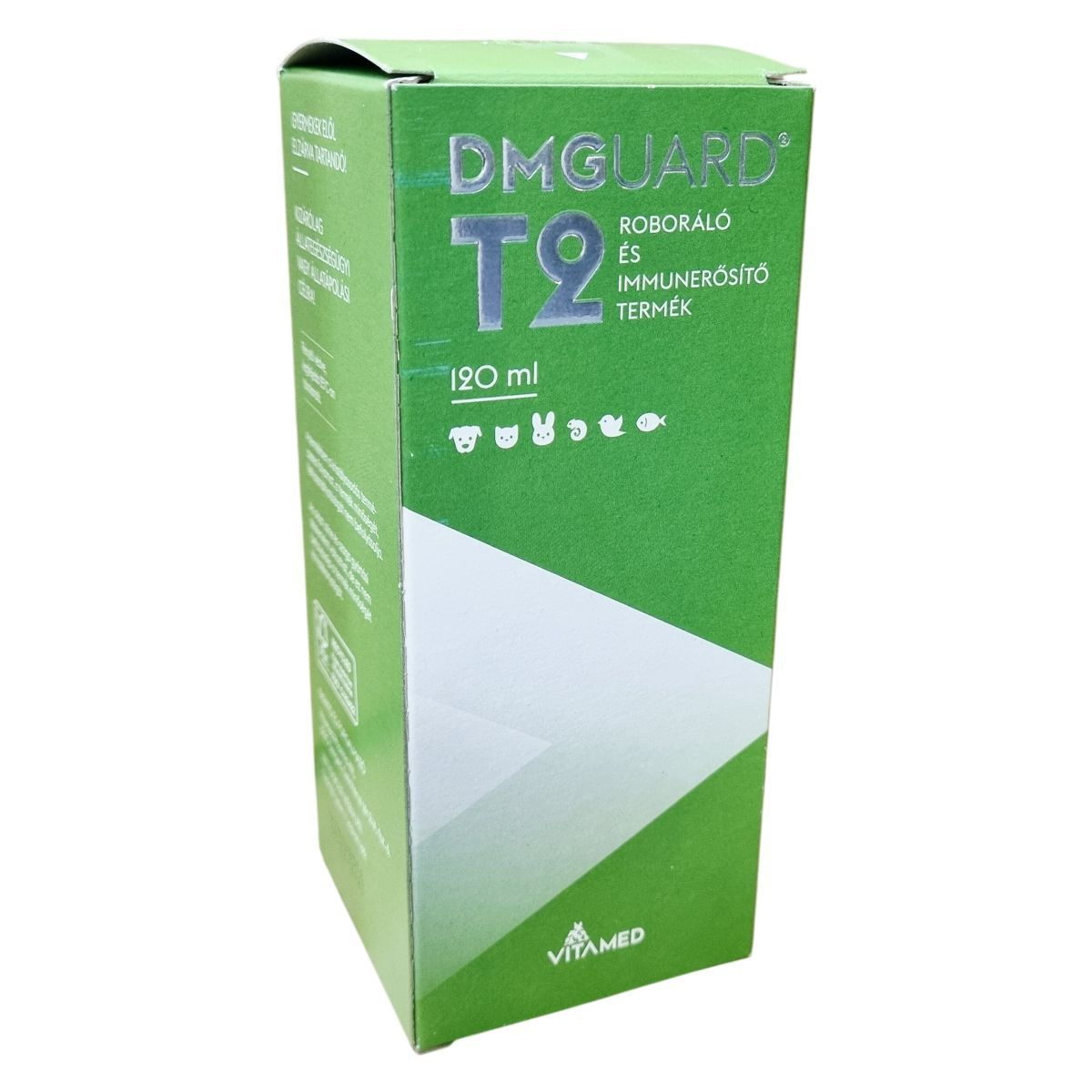 A DMGUARD® T2 egy speciális, roboráló és immunerősítő hatású állatgyógyászati termék, amely különböző állatfajok, például kutyák, macskák, madarak, halak és kisebb emlősök számára készült. A készítmény hatóanyagai között megtalálható az N,N-dimetil-glicin, a taurin és az orotsav, amelyek a szervezet egészségének támogatását célozzák. Az adagolás az állat testtömegéhez igazodik, és a napi adagot javasolt két részre osztva, akár táplálékhoz keverve beadni, hogy a maximális hatékonyság érhető el. Szükség esetén az adagot meg lehet kétszerezni, különös tekintettel daganatos betegségek kiegészítő kezelésére. A termék használata kizárólag az állatok egészségének megőrzésére és ápolására szolgál, emberi fogyasztásra nem alkalmas, valamint gyermekektől elzárva kell tartani. Tárolását fénytől védve, maximum 25°C-on kell biztosítani. A termék természetes tulajdonsága, hogy kristályosodhat, illetve a színe és illata gyártási tételenként változhat, azonban ez nem befolyásolja annak minőségét és hatékonyságát. A csomagolás FSC minősítésű újrahasznosított papírból készült, amely környezetbarát megoldást jelent.