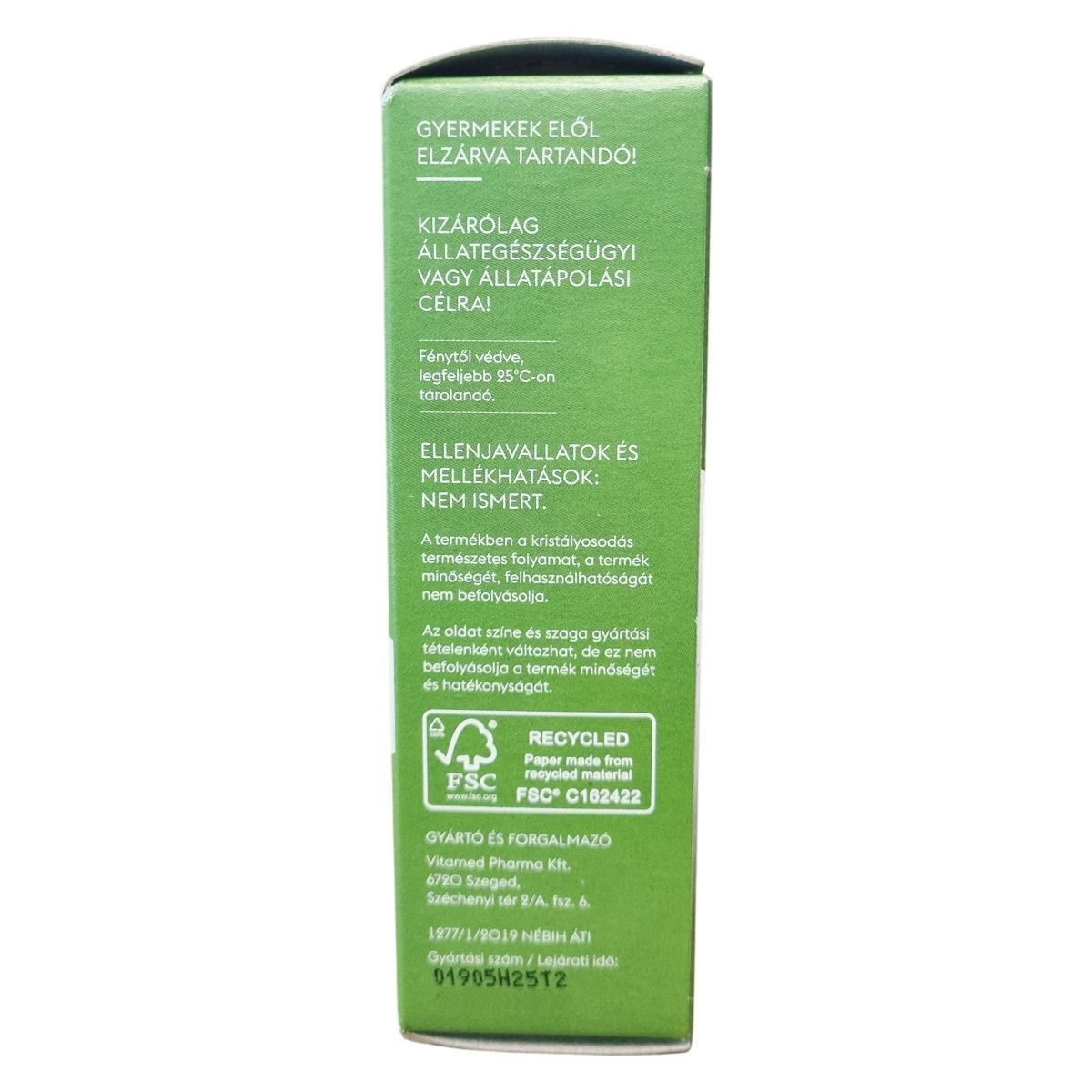 Gyermekek elől elzárva tartandó! Kizárólag állategészségügyi vagy állatápolási célra! Ellenző javallatok és mellékhatások nem ismertek.