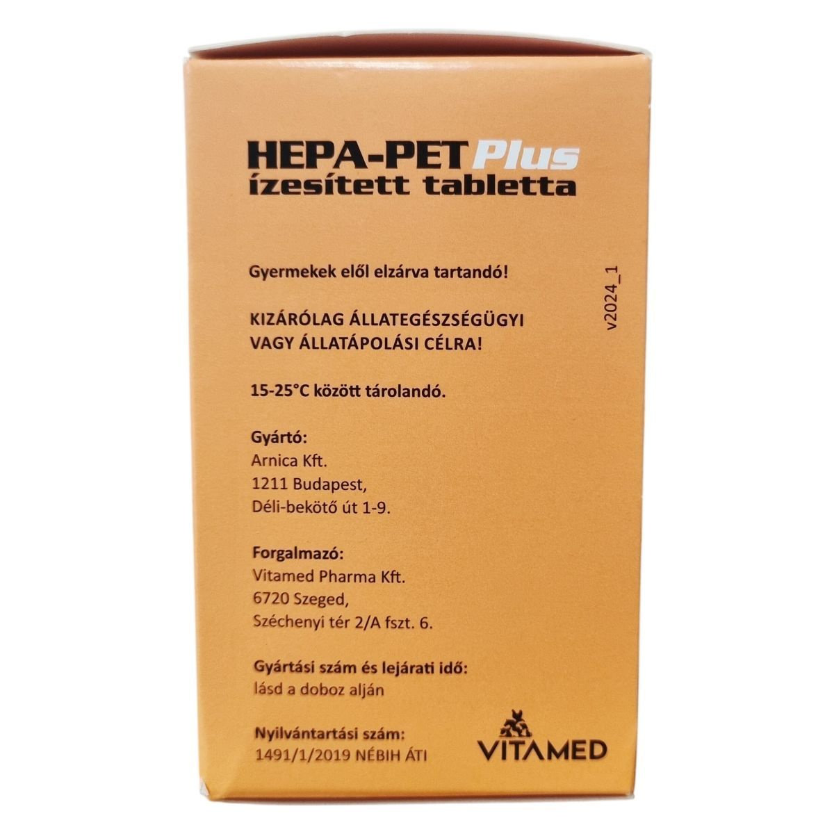 A HEPA-PET Plus 700 mg-os ízesített tabletta formában kapható, amely az állatgyógyászatban kutyák számára készült. Összetevői olyan hatóanyagokat tartalmaznak, amelyek a májműködés támogatására szolgálhatnak. A tablettát etetés előtt legalább egy órával ajánlott beadni, és mivel ízesített, a kutyák általában szívesen elfogadják, de szükség esetén kis falatban is beadható. A termék alkalmazása ajánlott sebészeti beavatkozás esetén is, a műtét előtti időszaktól a varratszedés időpontjáig. Az adagolás és a felhasználási időtartam a termékhez mellékelt részletes ismertető szerint javasolt követni. A termék kizárólag állategészségügyi vagy állatápolási célra készült, ezáltal nem helyettesíti az állatorvosi kezelést.