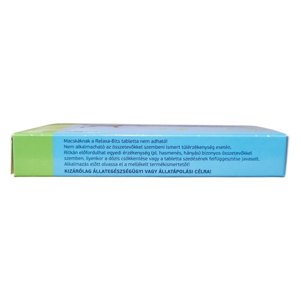 A Relaxa-Bits nyugtató hatású tabletta kifejezetten kutyák számára készült, viselkedészavarok kiegészítő kezelésére, amely segítheti a szorongás és a stressz csökkentését. A tabletta szájba adható, és az adagolás testtömeg alapján történik, különösen stresszes helyzetek előtt. Fontos, hogy macskáknak nem adható, valamint alkalmazása előtt ügyelni kell az esetleges túlérzékenységi reakciókra, amelyek ritkán előfordulhatnak, és szükség esetén az adag csökkentése vagy a szedés felfüggesztése javasolt.