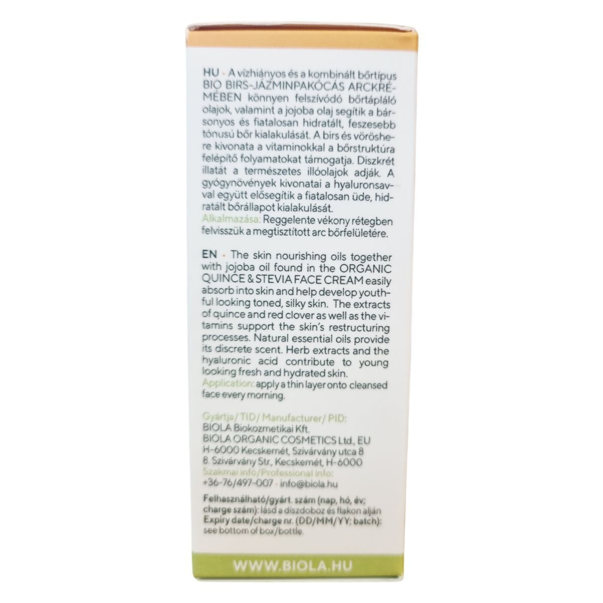Biola bio birs jázminpakócás arckrém 30ml leírása