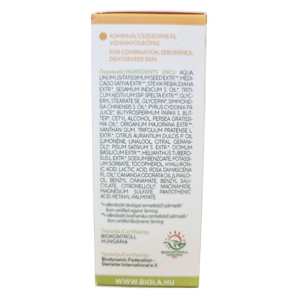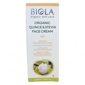 A Biola Bio Birs-Jázminpakócás arckrém biológiailag ellenőrzött ökológiai és biodinamikus termelésből származó összetevőket használ, amelyek támogatják a bőr szerkezetének megújulását és hidratáltságát. A természetes, bőrtápláló olajok és gyógynövény-kivonatok, mint a birs és vöröshere, valamint a jojoba olaj együttesen segítik a bőr bársonyos, fiatalos megjelenését. A hyaluronsav és természetes illóolajok finom illatot és hosszan tartó hidratálást biztosítanak. A termék különösen alkalmas kombinált, szeborreás és vízhiányos bőr ápolására, nem tartalmaz méhészeti eredetű apiterápiás összetevőket, így széles körben használható, természetes bőrápolóként.