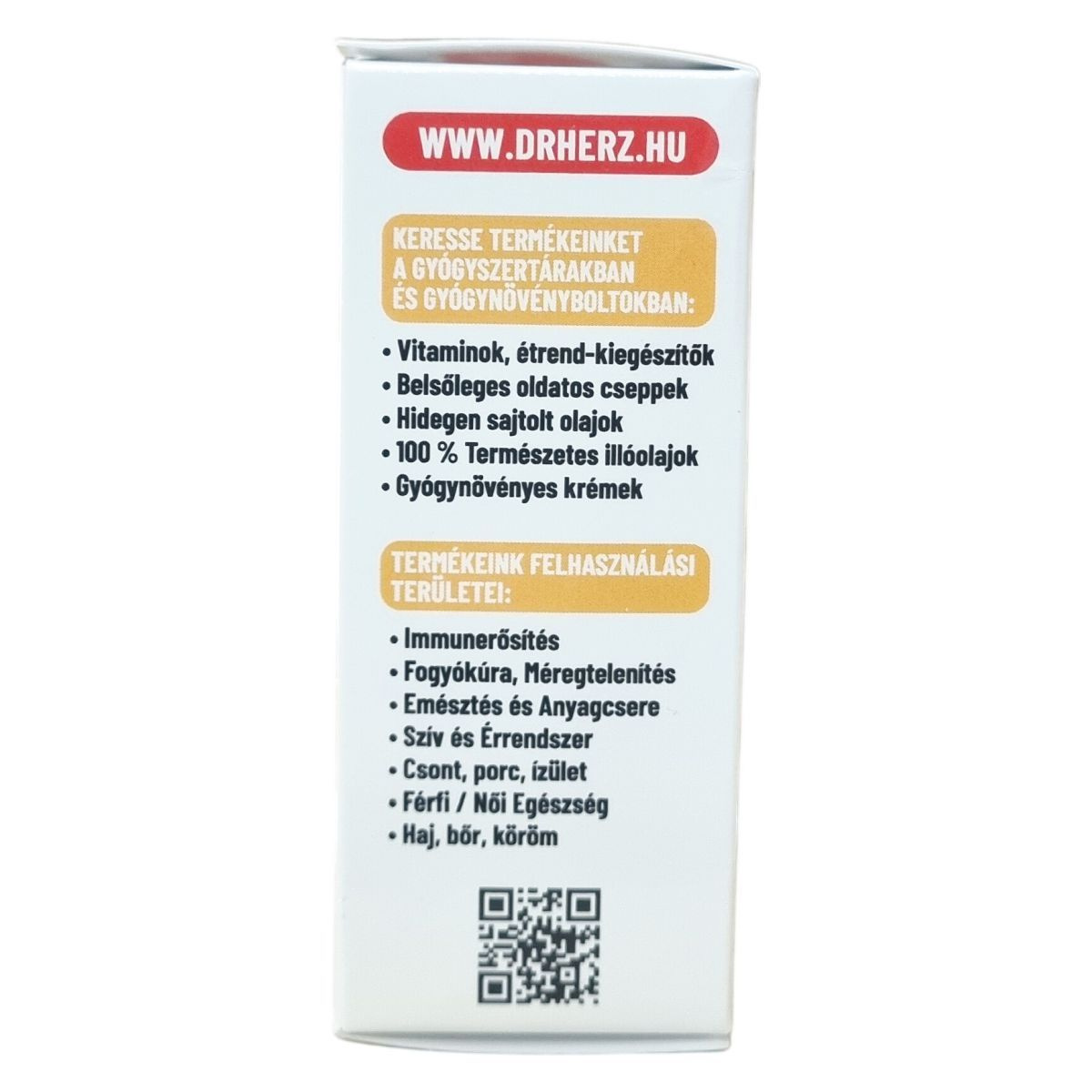 A Dr. Herz egy étrend-kiegészítőket és vitaminokat forgalmazó márka, amely különböző tápanyagokat, növényi kivonatokat és funkcionális összetevőket tartalmazó készítményeket kínál. A Dr. Herz az étrend-kiegészítők piacán ismert márkanév, amely elsősorban a következő termékkategóriákkal kapcsolódik össze: vitaminok és ásványi anyagok, növényi kivonatok, speciális tápanyagkészítmények, funkcionális olajok és komplex étrend-kiegészítők.
