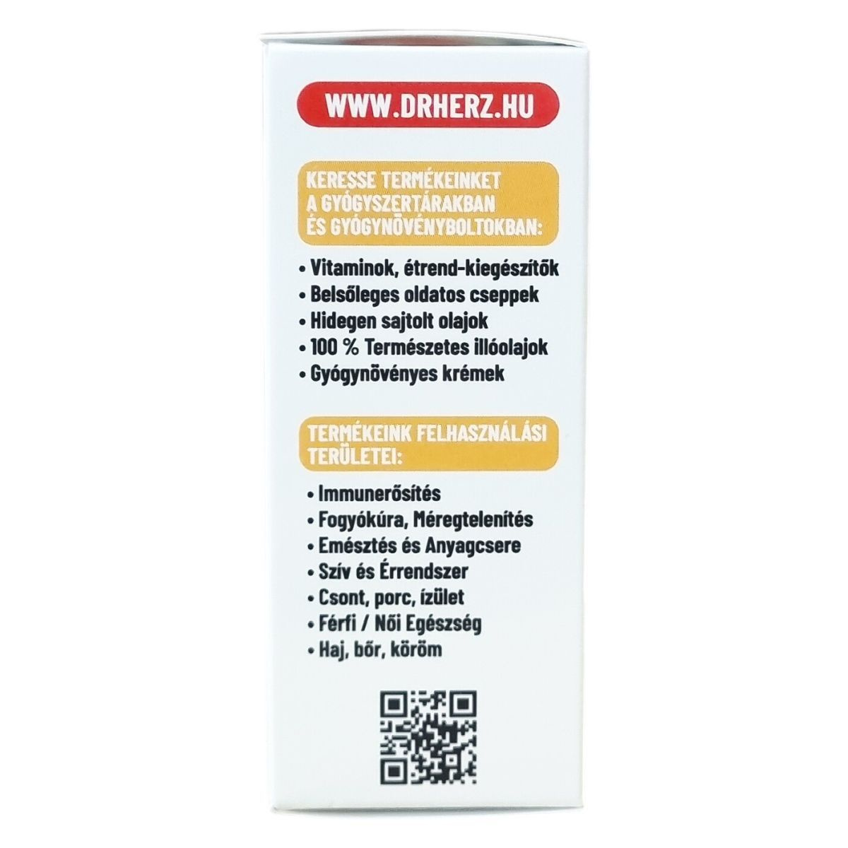 A Dr. Herz egy étrend-kiegészítőket és vitaminokat forgalmazó márka, amely különböző tápanyagokat, növényi kivonatokat és funkcionális összetevőket tartalmazó készítményeket kínál. A Dr. Herz az étrend-kiegészítők piacán ismert márkanév, amely elsősorban a következő termékkategóriákkal kapcsolódik össze: vitaminok és ásványi anyagok, növényi kivonatok, speciális tápanyagkészítmények, funkcionális olajok és komplex étrend-kiegészítők.