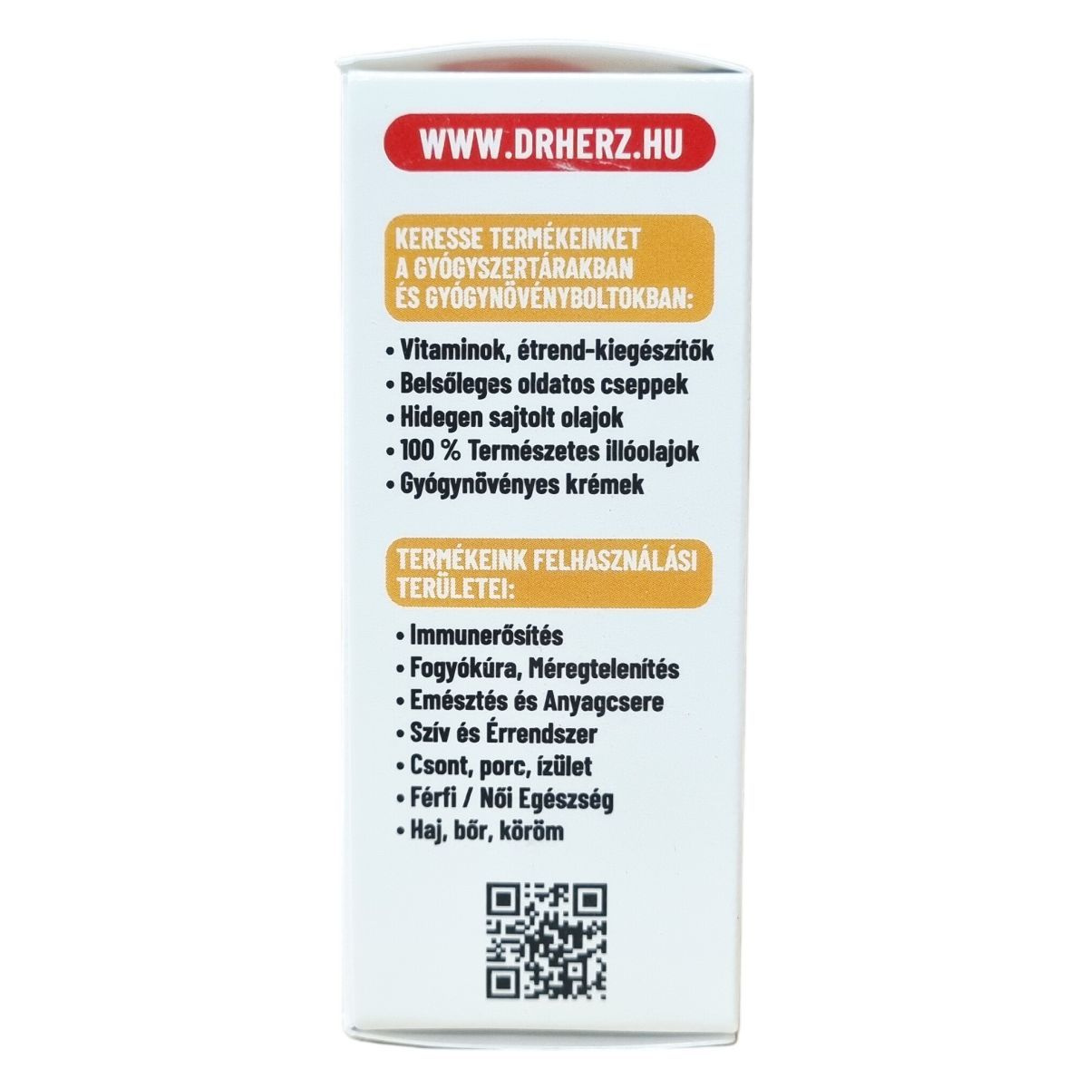 A Dr. Herz egy étrend-kiegészítőket és vitaminokat forgalmazó márka, amely különböző tápanyagokat, növényi kivonatokat és funkcionális összetevőket tartalmazó készítményeket kínál. A Dr. Herz az étrend-kiegészítők piacán ismert márkanév, amely elsősorban a következő termékkategóriákkal kapcsolódik össze: vitaminok és ásványi anyagok, növényi kivonatok, speciális tápanyagkészítmények, funkcionális olajok és komplex étrend-kiegészítők.