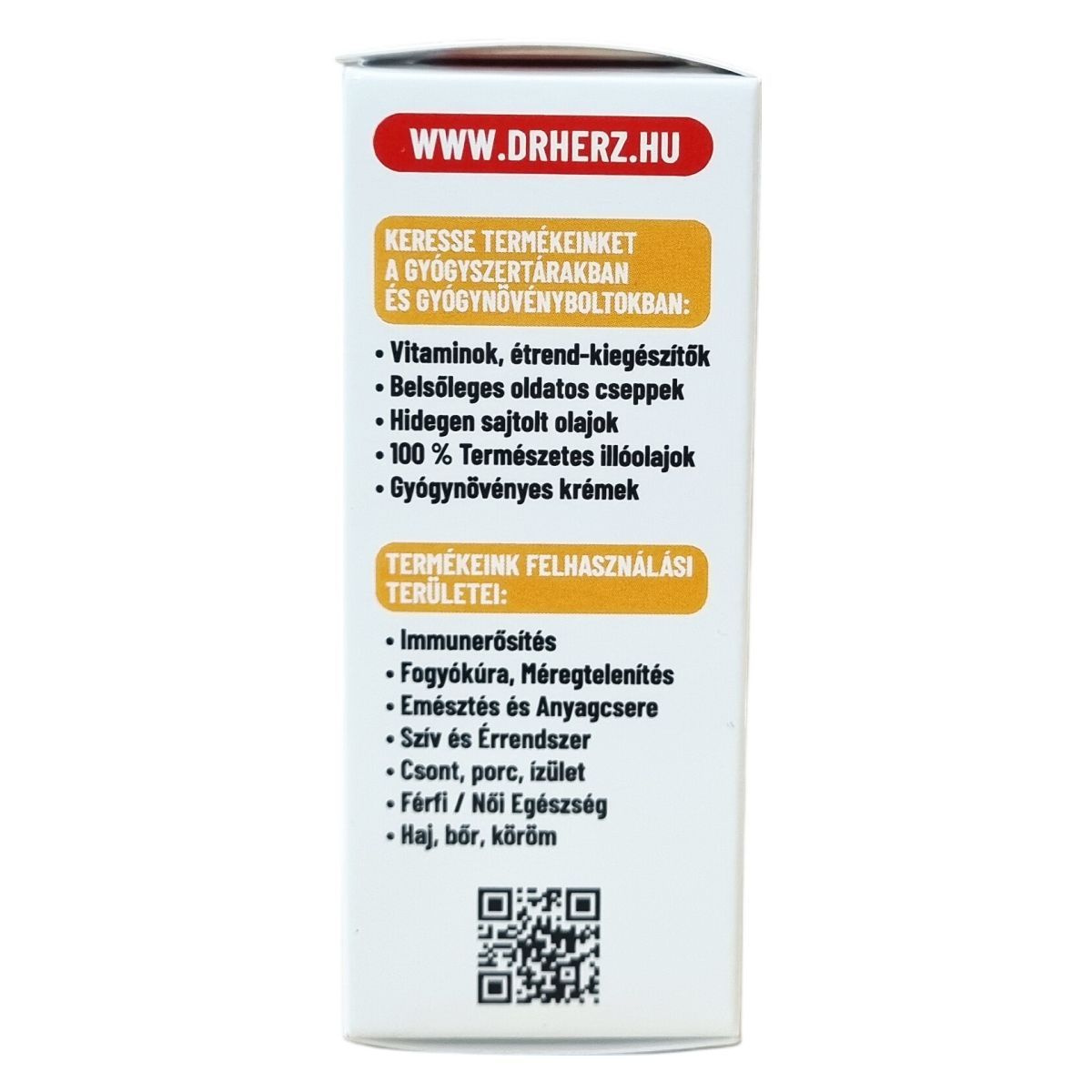 A Dr. Herz egy étrend-kiegészítőket és vitaminokat forgalmazó márka, amely különböző tápanyagokat, növényi kivonatokat és funkcionális összetevőket tartalmazó készítményeket kínál. A Dr. Herz az étrend-kiegészítők piacán ismert márkanév, amely elsősorban a következő termékkategóriákkal kapcsolódik össze: vitaminok és ásványi anyagok, növényi kivonatok, speciális tápanyagkészítmények, funkcionális olajok és komplex étrend-kiegészítők.