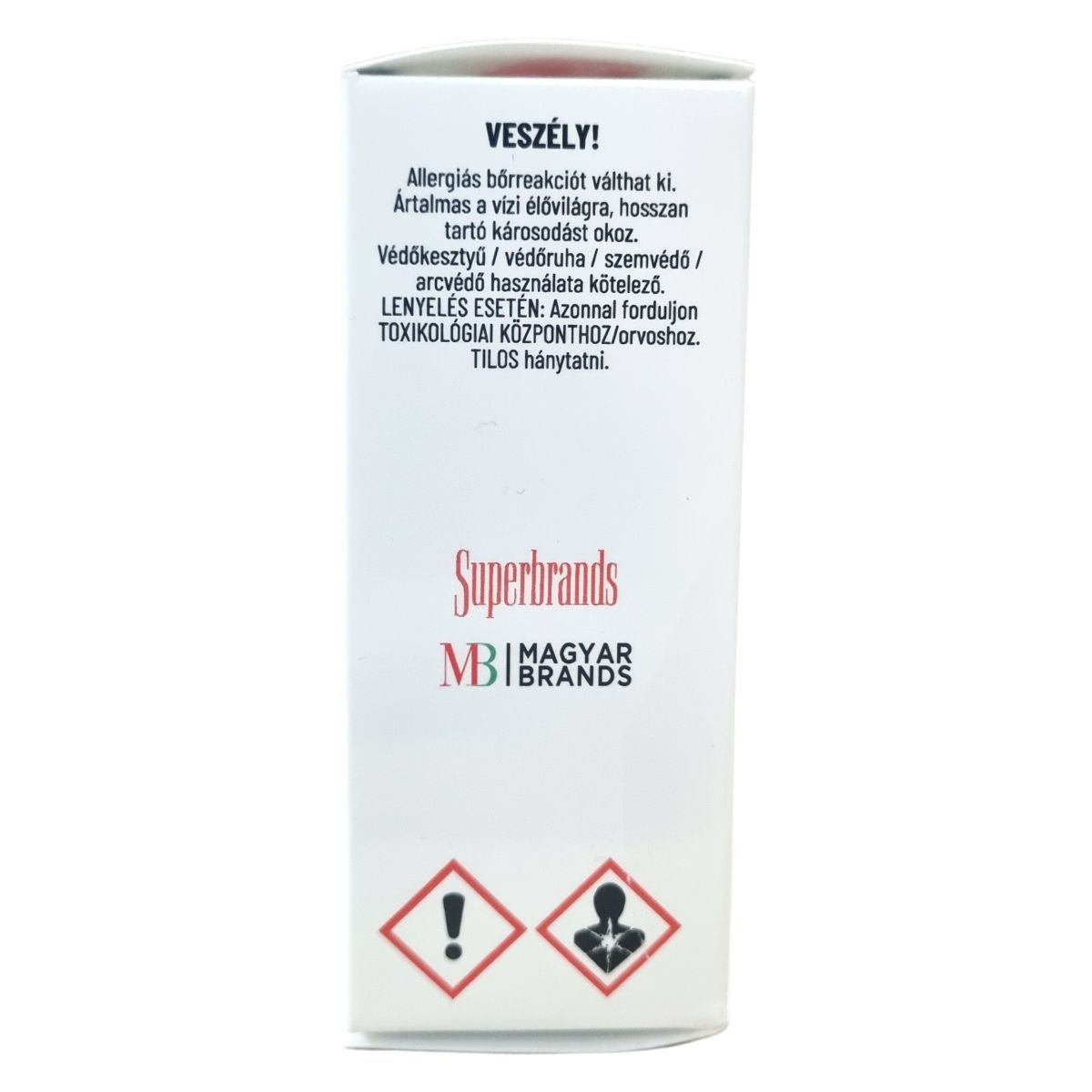 Ártalmas a vízi élővilágra, hosszan tartó károsodást okoz. Védőkesztyű, védőruha, szemvédő és arcvédő használata kötelező. Lenyelés esetén azonnal forduljon toxikológiai központhoz vagy orvoshoz, hánytatni tilos.