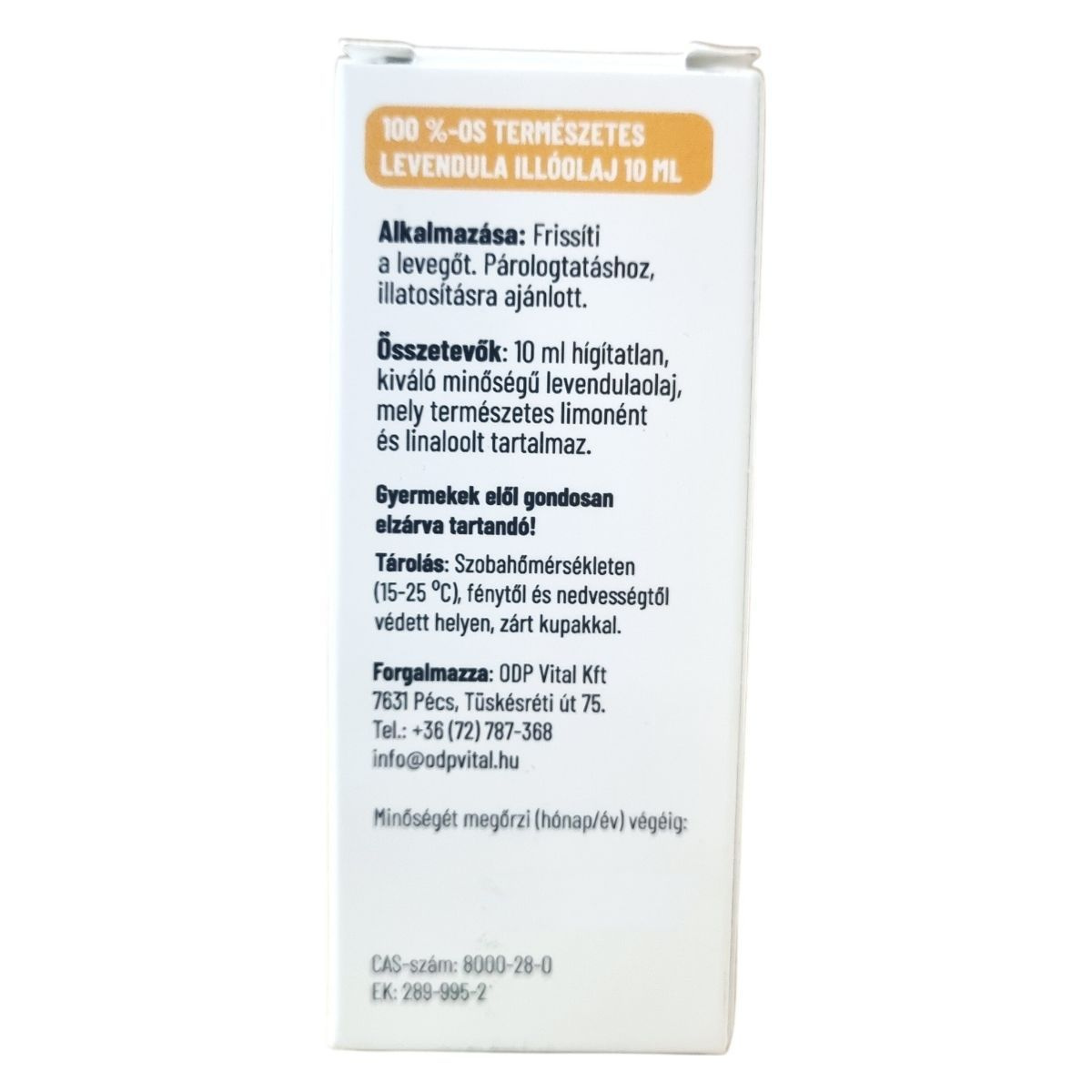 A Dr.Herz® 100 % természetes levendula illóolaj 10 ml kiszerelésben kiváló minőségű, hígítatlan levendulaolajat tartalmaz, mely aromaterápiás és légfrissítő célokra egyaránt alkalmas. A termék természetes limonént és linaloolt tartalmaz, mely összetevők hozzájárulnak jellegzetes illatához. Használata során fontos, hogy gyermekek elől gondosan elzárva tartsuk. A termék tárolása a megfelelő körülmények között, fénytől és nedvességtől védve ajánlott, így megőrzi minőségét. Az illóolaj használata során figyelembe kell venni allergén hatásait és környezetvédelmi szempontokat, különös tekintettel a vízi élővilág védelmére. A termék forgalmazója az ODP Vital Kft, amely biztosítja a megbízható minőséget és elérhetőséget gyógyszertárakban és gyógynövényboltokban.
