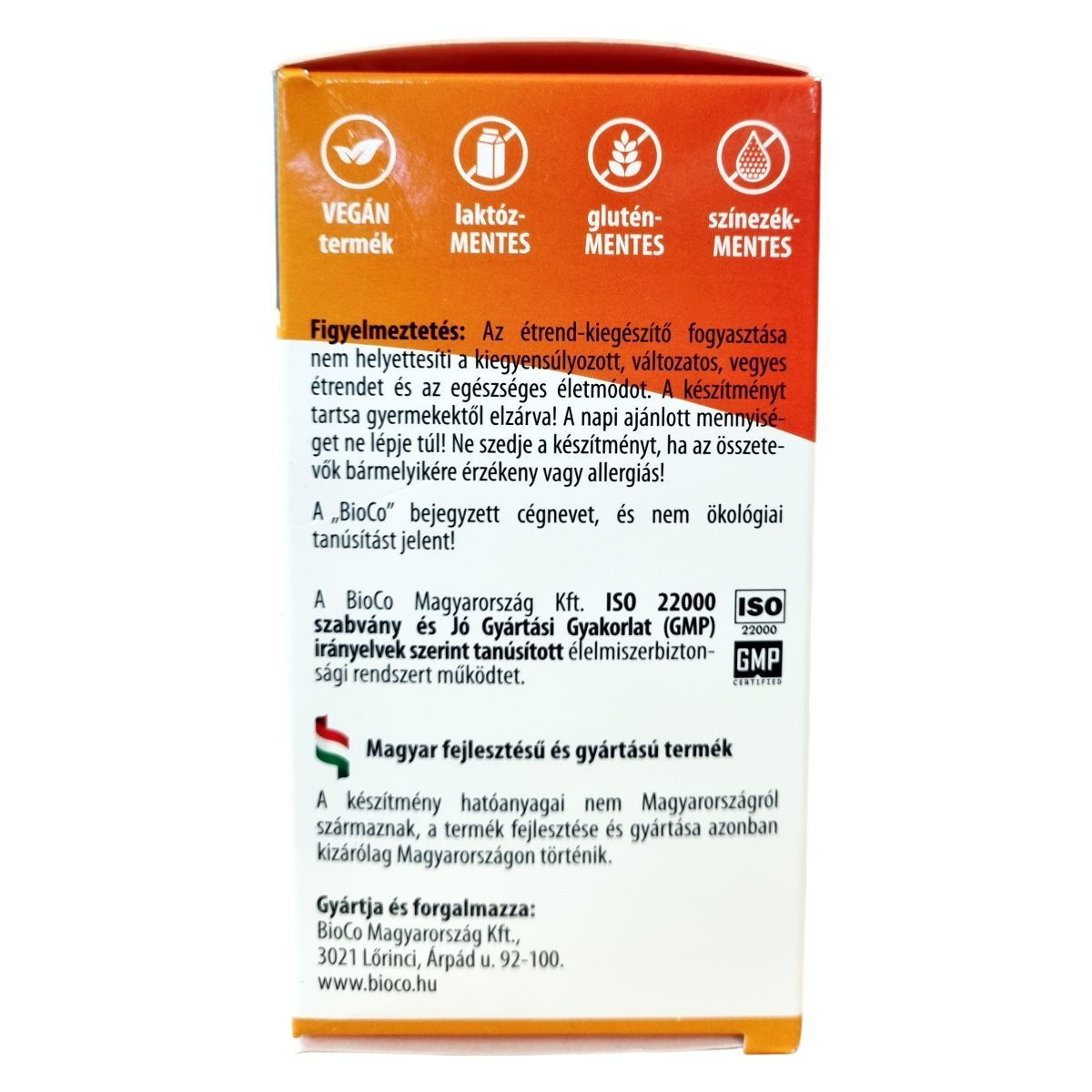 OGYÉI notifikációs szám: 30519/2022, ISO 22000, GMP