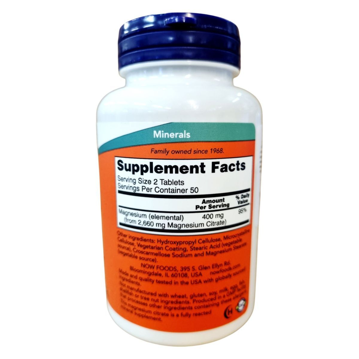 A NOW Magnesium Citrate étrend-kiegészítő tabletta magnéziumot tartalmaz, amely hozzájárulhat a normál energiatermelő anyagcsere-folyamatokhoz, az elektrolit-egyensúly fenntartásához, a sejtosztódáshoz, valamint a normál csontozat és fogazat megőrzéséhez. Továbbá támogathatja az idegrendszer megfelelő működését, a normál izomműködést, és segíthet a fáradtság és kifáradás csökkentésében. A termék vegetáriánus és vegán étrendbe is beilleszthető, és nem tartalmaz allergéneket, mint például búza, glutén, szója, tej, tojás, hal, kagyló vagy diófélék. A termék minőségi tesztelése az USA-ban történt, globálisan beszerzett összetevőkből.