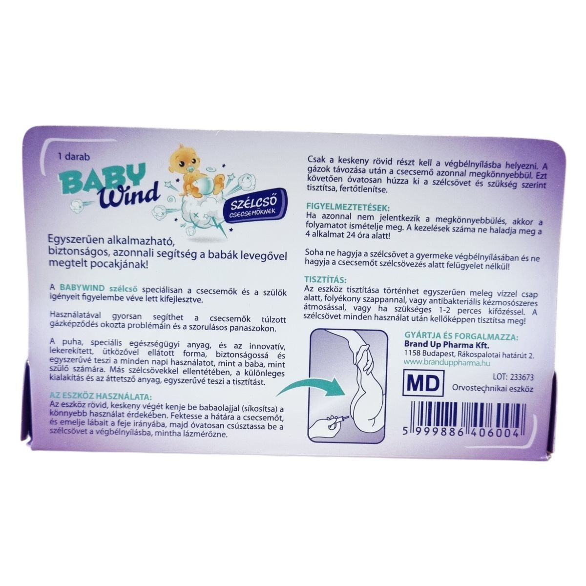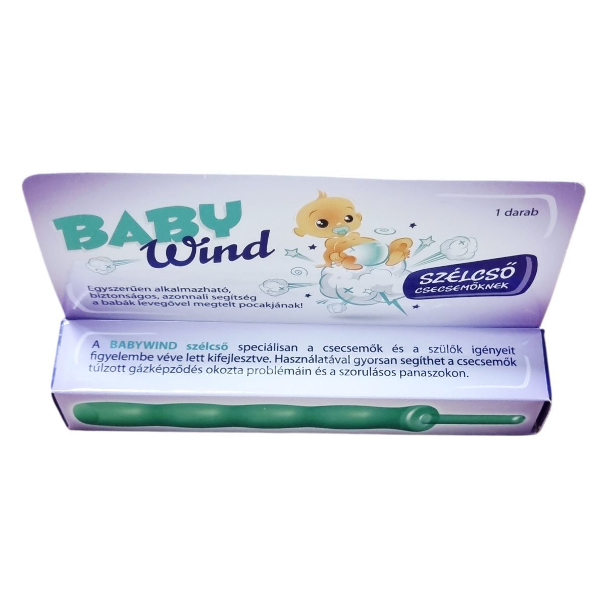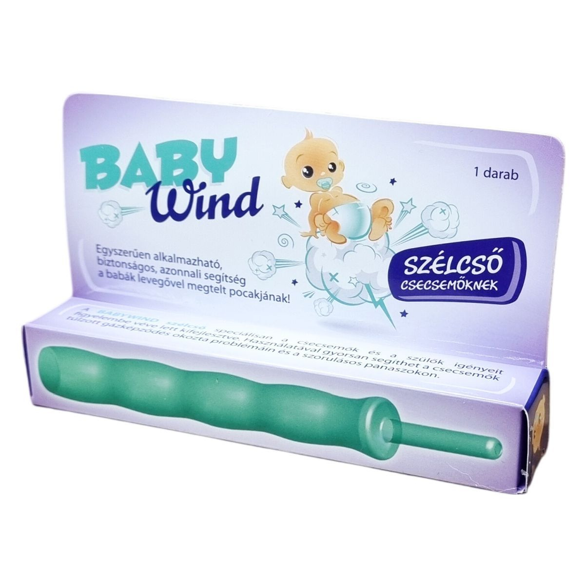A BABYWIND szélcső speciálisan a csecsemők és a szülők igényeit figyelembe véve lett kifejlesztve. Használatával gyorsan segíthet a csecsemők túlzott gázképződés okozta problémáin és a szorulásos panaszokon. A puha, speciális egészségügyi anyag és az innovatív, lekerekített, ütközővel ellátott forma biztonságossá és egyszerűvé teszi a mindennapi használatot, mind a baba, mind a szülő számára. Más szélcsövekkel ellentétben a különleges kialakítás és az áttetsző anyag egyszerűvé teszi a tisztítást. Az eszköz tisztítása történhet meleg vízzel, folyékony szappannal, antibakteriális kézmosószerrel vagy szükség esetén 1-2 perces kifőzéssel. Orvostechnikai eszköz.