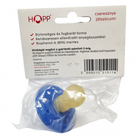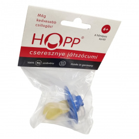 A HOPP® cseresznye játszócumi 6 hónapos kortól ajánlott, német minőségben készül. A termék biztonságos és fogbarát formájú, rendszeresen ellenőrzött anyagösszetétellel rendelkezik, amely tökéletesen megfelel az EU-s szabványoknak. A cumi BPA-mentes alapanyagból készült, biztosítva ezzel a gyermek egészségét. A minőségét a gyártástól számított két évig őrzi meg, használat során azonban fontos a megfelelő higiénia és rendszeres, havi csere, valamint kerülni kell a látható hő és napsütés hatását.