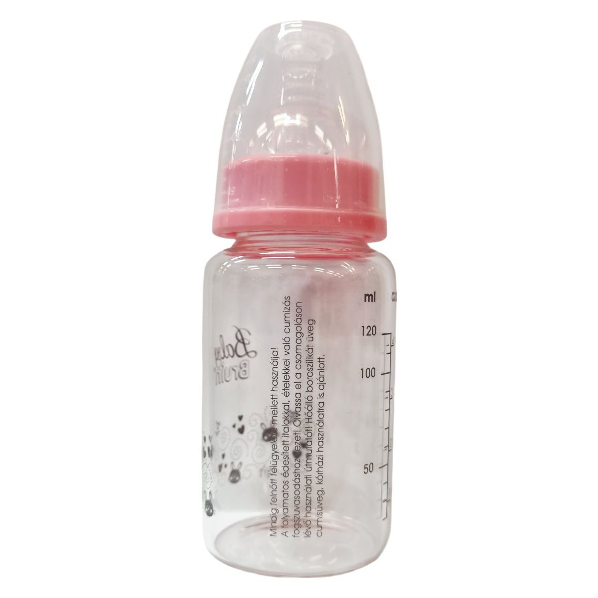 BabyBruin 120 ml-es, hőálló, boroszilikát üveg cumisüveg. 1-es méretű, szilikon tejes etetőcumit tartalmaz, amely 0-12 hónapos korig ajánlott 6000 fokig hőálló cumisüveg, mely 150 fokos hőmérsékletkülömbségnek rezisztens