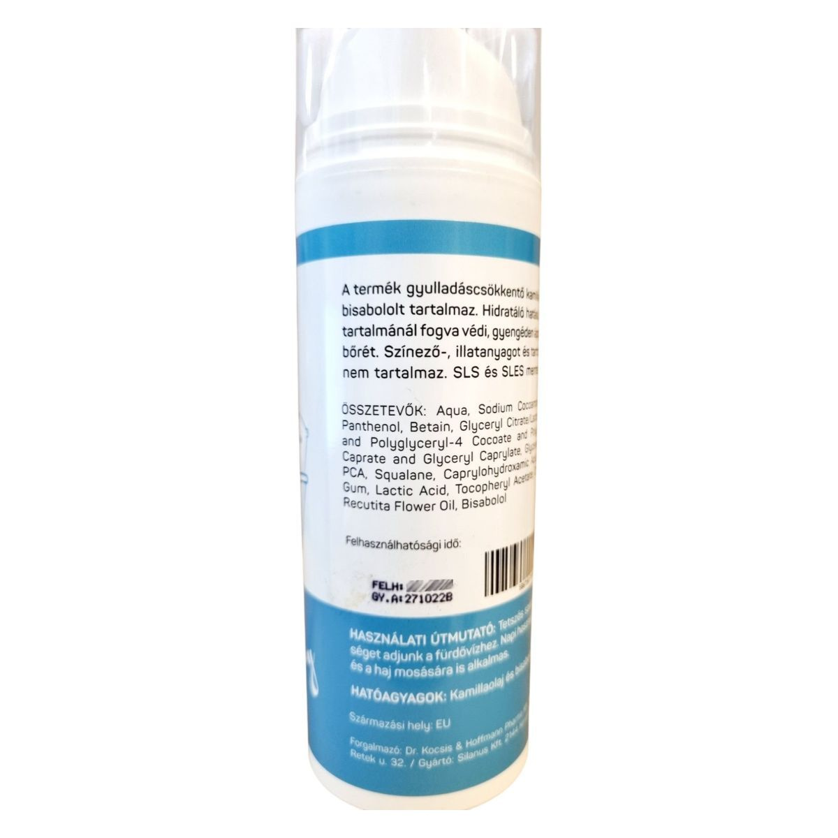 A HERZÉRIA Kamillás fürdető és sampon gyulladáscsökkentő kamilla olajat és bisabololt tartalmaz, amelyek hozzájárulhatnak a baba bőrének gyengéd ápolásához. A termék hidratáló hatású, vitamintartalmánál fogva védheti a bőrt. Színező-, illatanyagot és tartósítószert nem tartalmaz, így érzékeny bőrű babák számára is ideális lehet. A termék vegán, valamint SLS- és SLES-mentes, ami tovább növelheti a bőrbarát tulajdonságait. A használati útmutató szerint tetszés szerinti mennyiséget adhatunk a fürdővízhez, és napi használatra is alkalmas a fejbőr és a haj mosására.