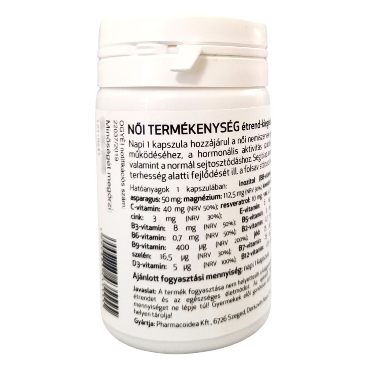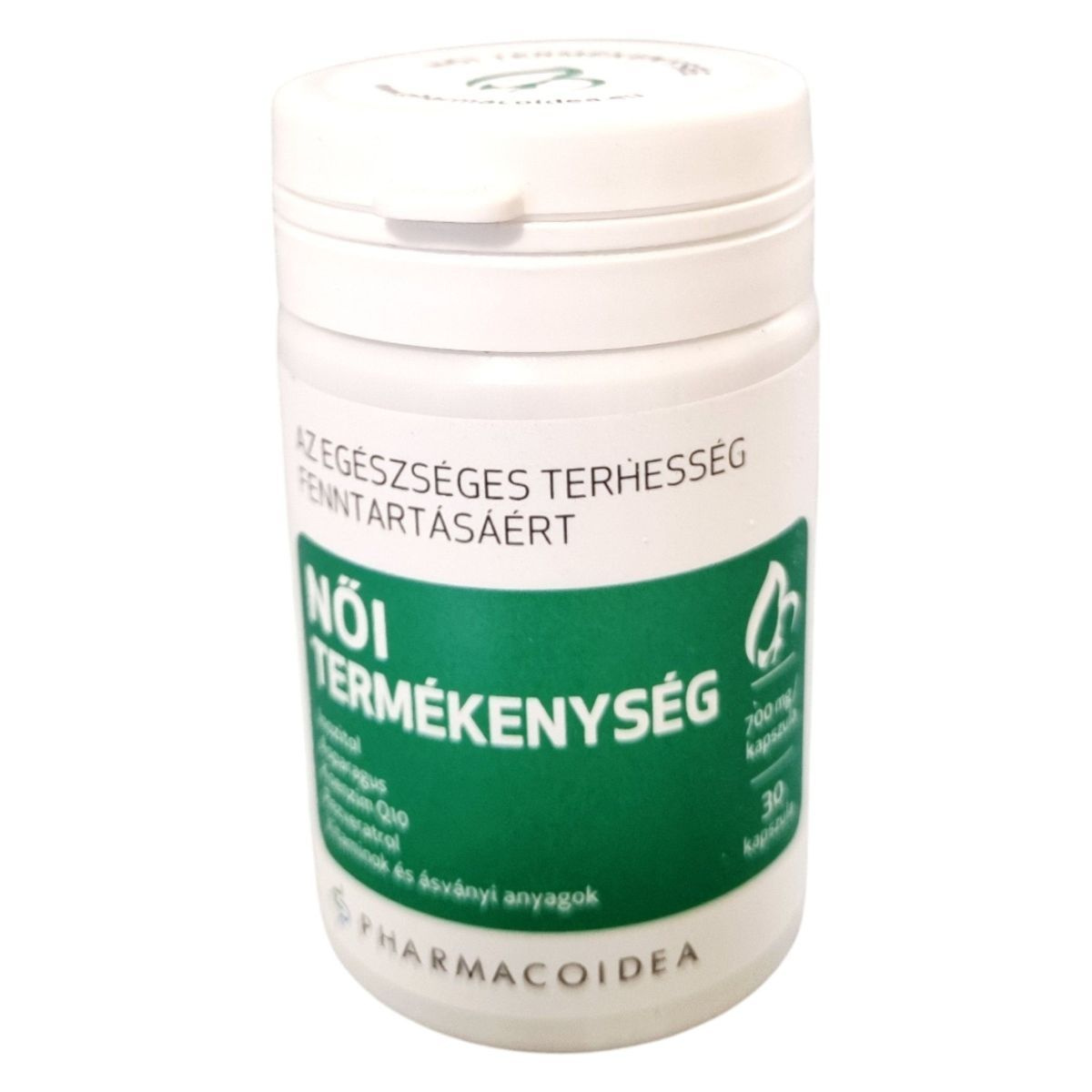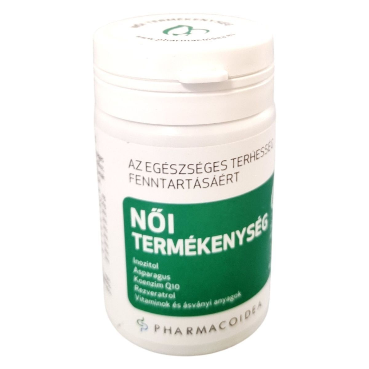 A PHARMACOIDEA NŐI TERMÉKENYSÉG étrend-kiegészítő célja, hogy támogassa a női nemiszervek egészséges működését és a hormonális aktivitás szabályozását. A termék inozitolt, aszparáguszt, koenzim Q10-et, rezveratrolt, valamint különböző vitaminokat és ásványi anyagokat tartalmaz, amelyek hozzájárulhatnak a normál sejtosztódáshoz és az anyai szövetek terhesség alatti fejlődéséhez. A termék fogyasztása nem helyettesíti a kiegyensúlyozott étrendet és az egészséges életmódot, és az ajánlott napi mennyiséget nem szabad túllépni. A terméket a Pharmacoidea Kft. gyártja.