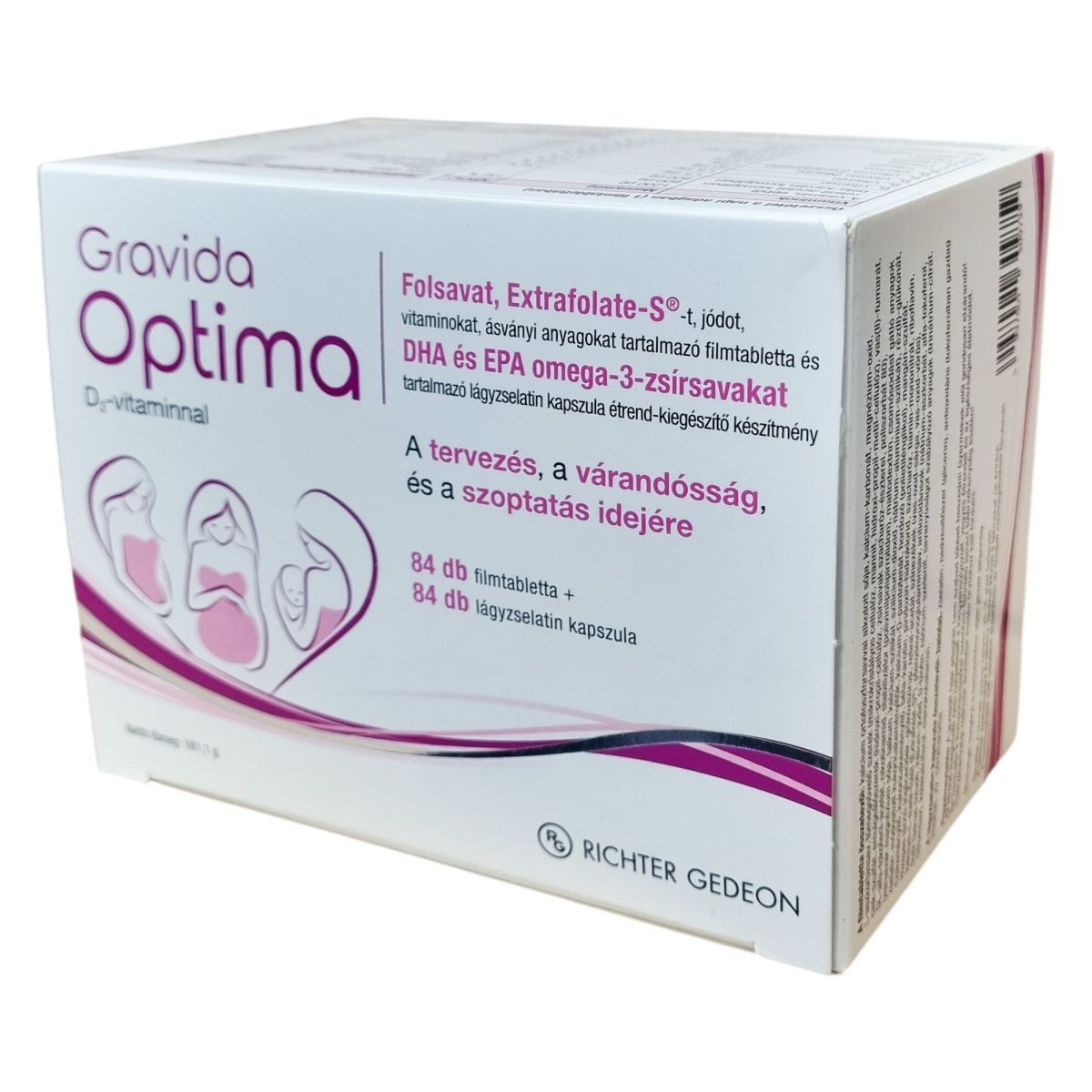 A Gravida Optima kifejezetten a fogantatás tervezésekor, valamint a várandósság és a szoptatás időszakában javasolt a megnövekedett vitamin- és ásványianyag-szükséglet támogatására. A termék folátot – folsavat és Extrafolate-S® formában – tartalmaz, amely részt vehet a sejtosztódásban, hozzájárulhat az anyai szövetek növekedéséhez, valamint szerepet játszhat a normál aminosav-szintézisben és a vérképződésben. Az alacsony anyai folátszint a fejlődő magzat velőcső-záródási rendellenességének kockázati tényezője lehet, amelynek csökkentése érdekében napi 400 µg folsav rendszeres fogyasztása javasolt. A termék DHA-t is tartalmaz, amely az anya szervezetéből vagy anyatejből felvéve hozzájárulhat a magzat és az anyatejjel táplált csecsemő agyának és szemének megfelelő fejlődéséhez. A DHA és EPA omega-3-zsírsavak napi mennyisége plusz a javasolt felnőtt napi adag további DHA-t biztosít. A készítmény filmtablettából és lágyzselatin kapszulából áll, amelyek komplexen fedezhetik a terhesség és szoptatás idején szükséges vitamin- és ásványianyag-bevitelt.