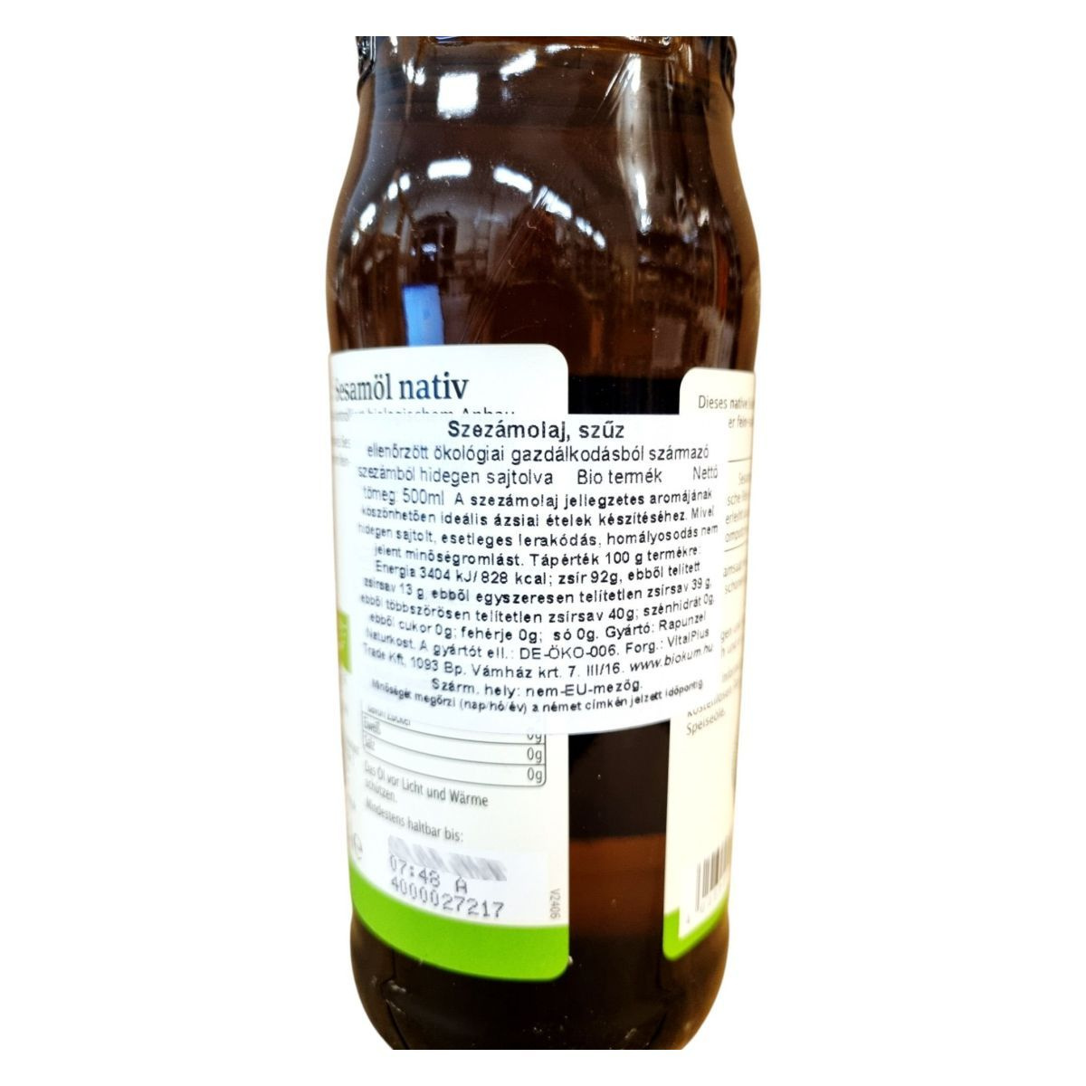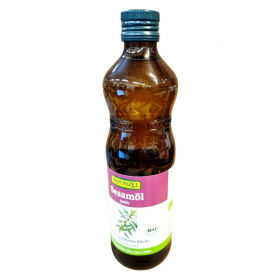 Szezámolaj, szűz, ellenőrzött ökológiai gazdálkodásból származó szezámból hidegen sajtolva.