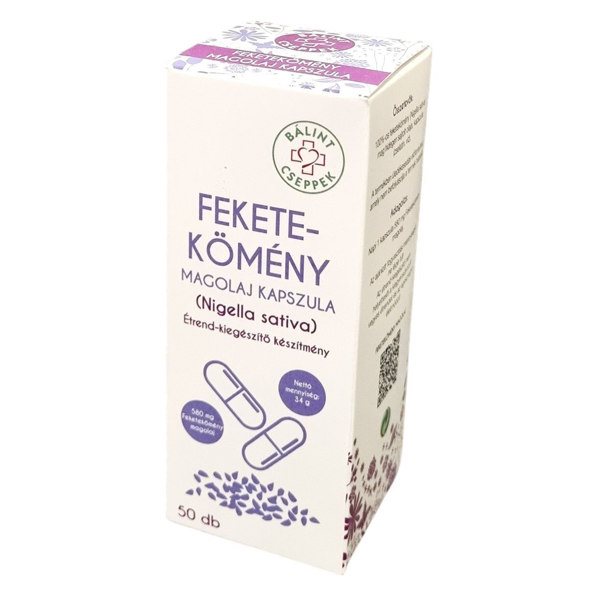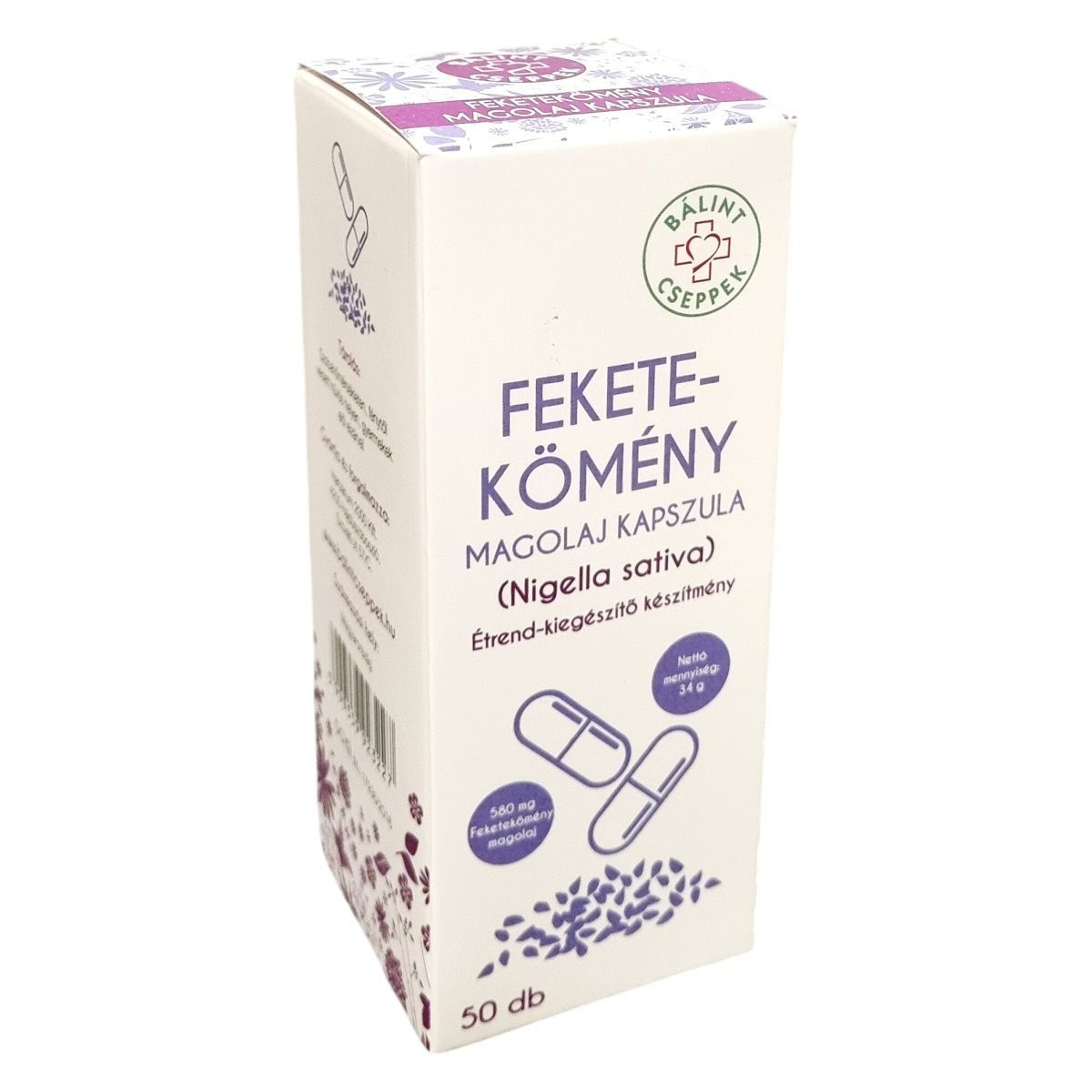 A BÁLINT Cseppek Feketekömény magolaj kapszula Magyarországon készül, 100%-os Nigella sativa magolajból, amelyet hidegen sajtolnak. A termék 580 mg feketekömény magolajat tartalmaz kapszulánként, amelyek zselatinból és vízből állnak. A csomagolás 50 darab kapszulát tartalmaz, nettó tömege 34 gramm. A termék természetéből adódóan előfordulhat benne üledék, amely nem befolyásolja hatását. A tárolást illetően fontos, hogy a készítményt szobahőmérsékleten, fénytől védett, hűvös helyen tartsuk, gyermekek elől elzárva. Az ajánlott napi fogyasztás 1 kapszula, és az étrend-kiegészítő nem helyettesíti a kiegyensúlyozott étrendet és az egészséges életmódot.