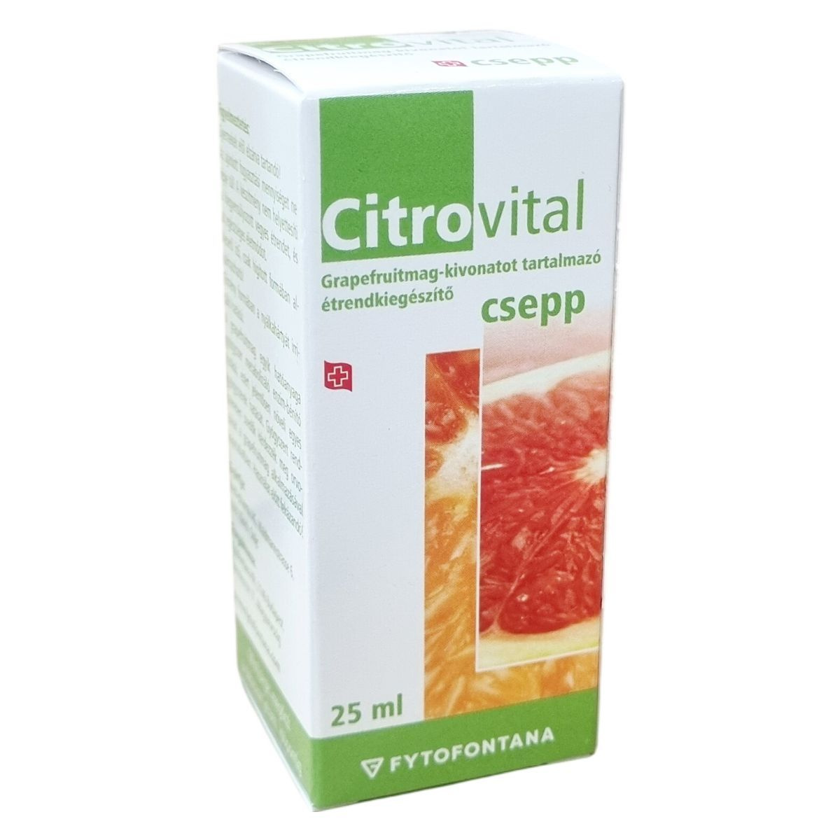 A Citrovital készítmény 25 ml-es kiszerelésben érhető el, grapefruitmag-kivonatot tartalmazó cseppként. Természetes polifenolokban gazdag összetételét növényi glicerin, víz, valamint 8,25 ml grapefruitmag-kivonat alkotja. Használata során a keserű íz miatt ajánlott hígítás gyümölcslében, különösen narancs- vagy grapefruitlében. A termék hatóanyagai különleges kölcsönhatásban állhatnak egyes gyógyszerekkel, ezért rendszeres gyógyszerfogyasztás mellett orvosi tanács kérendő. A terméket gyermekek elől el kell zárni, az ajánlott fogyasztási mennyiséget nem szabad túllépni, és nem helyettesíti a kiegyensúlyozott étrendet és az egészséges életmódot.