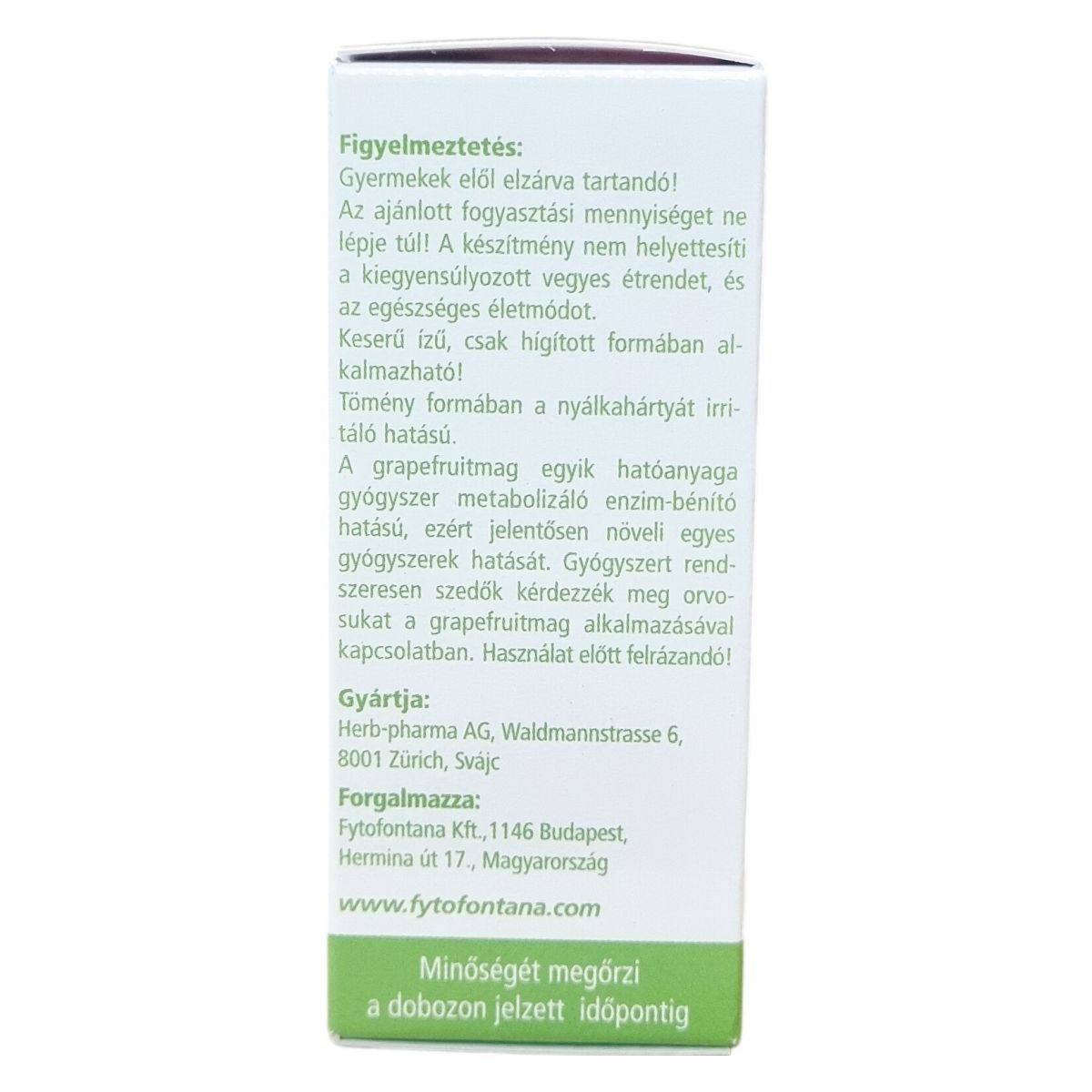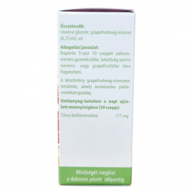 Gyermekek elől elzárva tartandó! Az ajánlott fogyasztási mennyiséget ne lépje túl! A készítmény nem helyettesíti a kiegyensúlyozott vegyes étrendet, illetve az egészséges életmódot. Keserű ízű, ezért csak hígított formában alkalmazható! Tömény formában a nyálkahártyát irritáló hatású lehet. A grapefruitmag egyik hatóanyaga gyógyszer-metabolizáló enzim-bénító hatású, így jelentősen növelheti egyes gyógyszerek hatását, ezért gyógyszert rendszeresen szedők konzultáljanak kezelőorvosukkal. Használat előtt felrázandó!