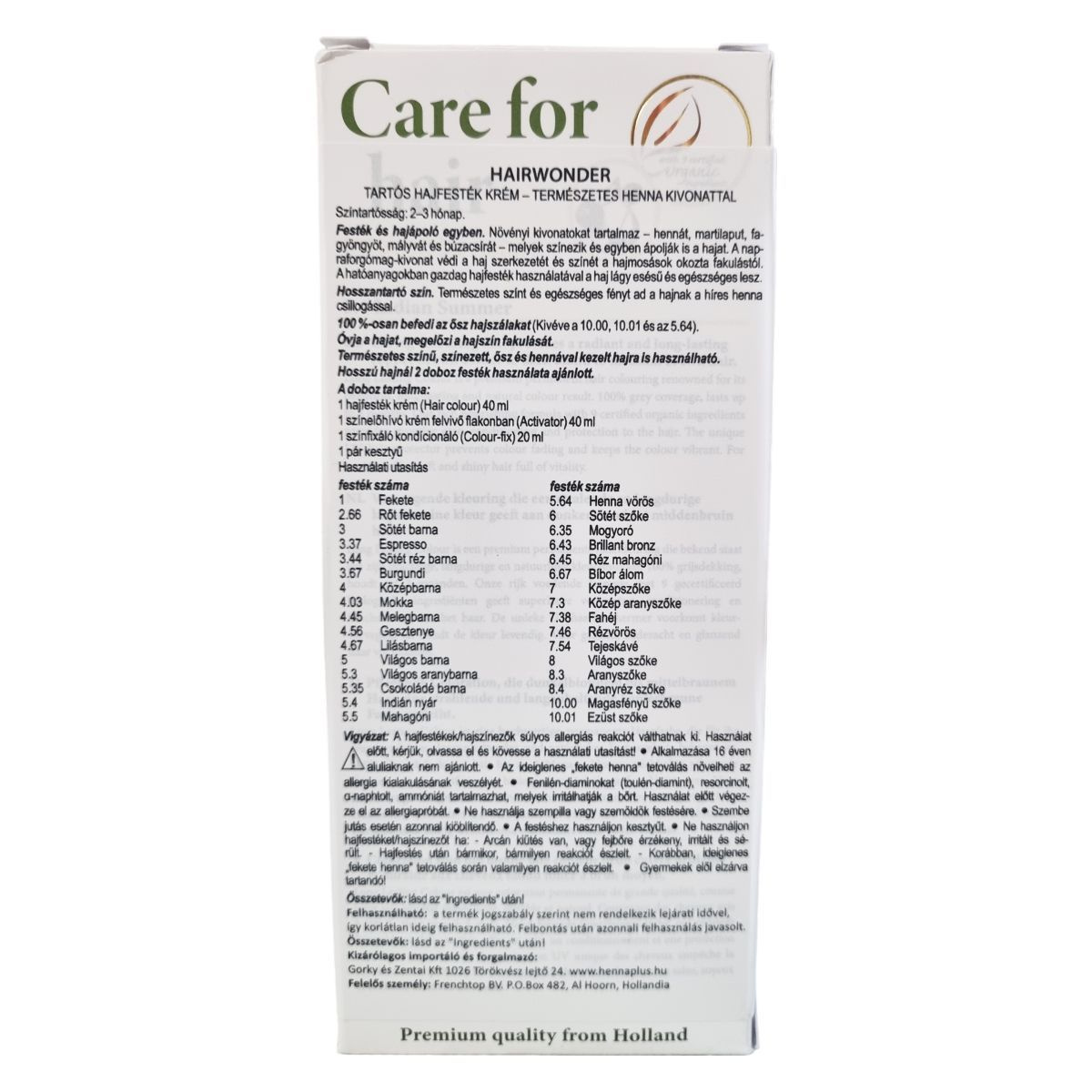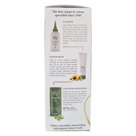 A tartós hajfesték természetes hennakivonattal készült, 2–3 hónapon át tartó színeredményt nyújt. A festék egyszerre színez és ápol, számos növényi kivonatot tartalmaz, mint a henna, martilapi, búzacsíra, napraforgómag és több gyógynövénykivonat. A formula védi a haj szerkezetét, fokozza a fényt, lassítja a szín fakulását és puha, rugalmas hajvégeredményt ad. A termék három részből áll: hajfesték krém, aktivátor és színfixáló kondicionáló. A kondicionáló lezárja a haj kutikuláit és fényes, selymes érzetet ad. A hajfesték 97%-ban természetes összetevőkre épül, és organikus növényi kivonatokkal gazdagított. Hosszú haj esetén két csomag használata ajánlott.