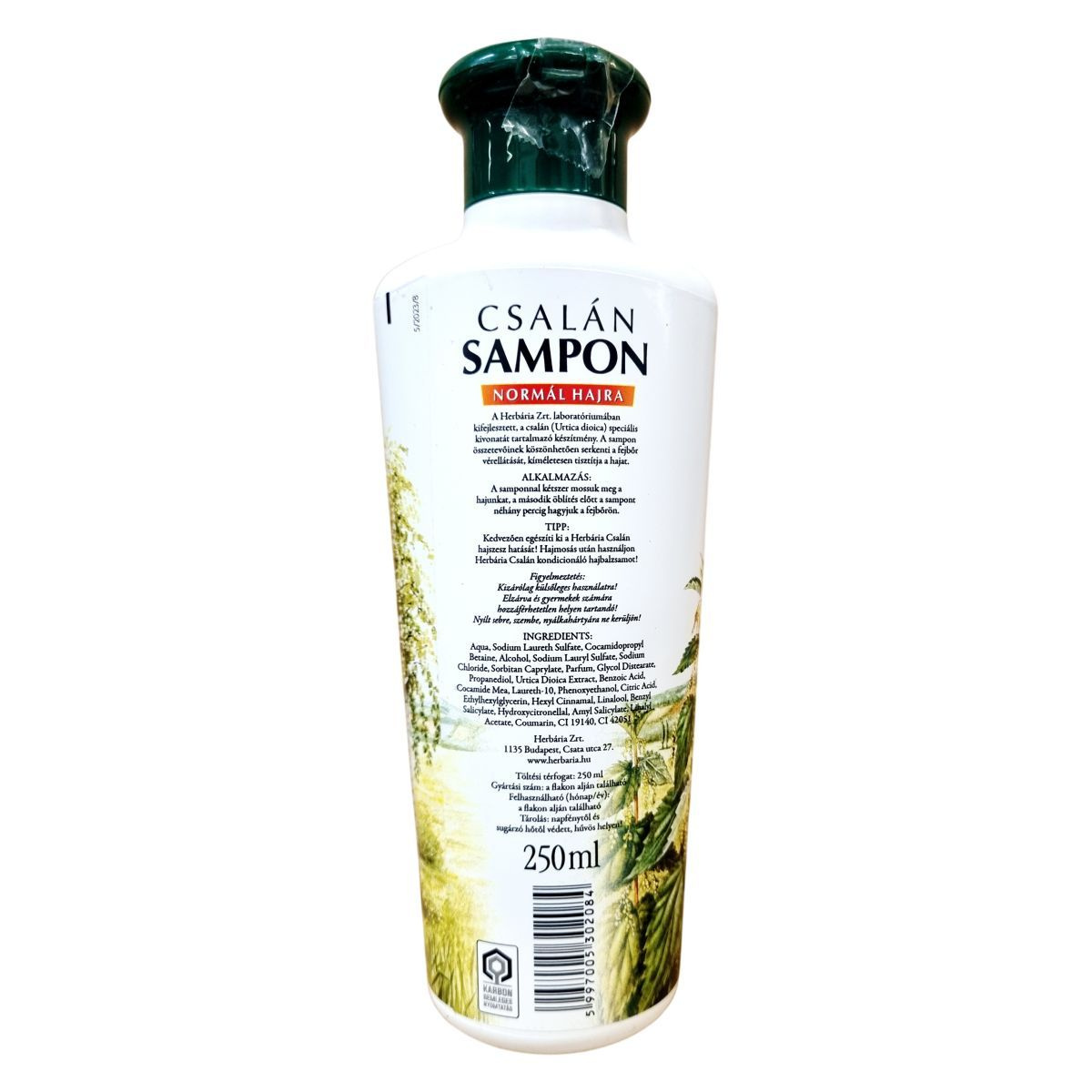 A Herbária Zrt. laboratóriumában kifejlesztett csalán sampont elsősorban normál hajra ajánljuk. A különleges csalánkivonat serkenti a fejbőr vérellátását, ezáltal egészségesebb hajképet támogat. Használata során a haj tiszta, friss és ápolt marad. A termék kedvezően kiegészíthető a Herbária Csalán hajszesz és kondicionáló hajbalzsam használatával. A flakonon található gyártási szám és felhasználhatósági idő jelzi a termék minőségi garanciáját.