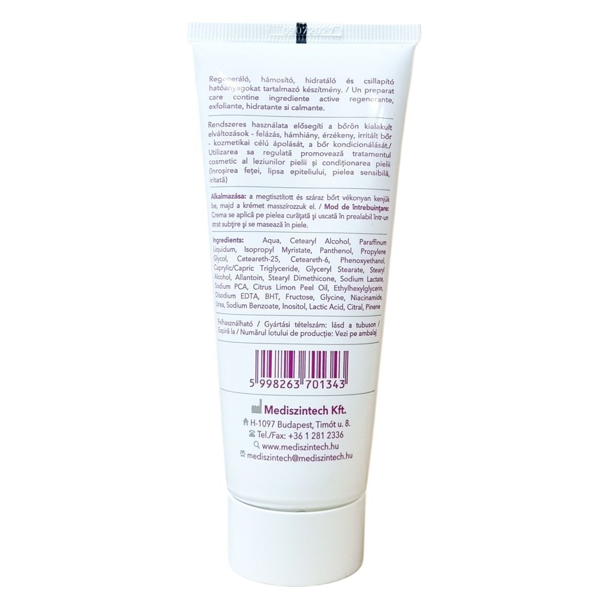 Regeneráló, hámosító, hidratáló és csillapító összetevők.