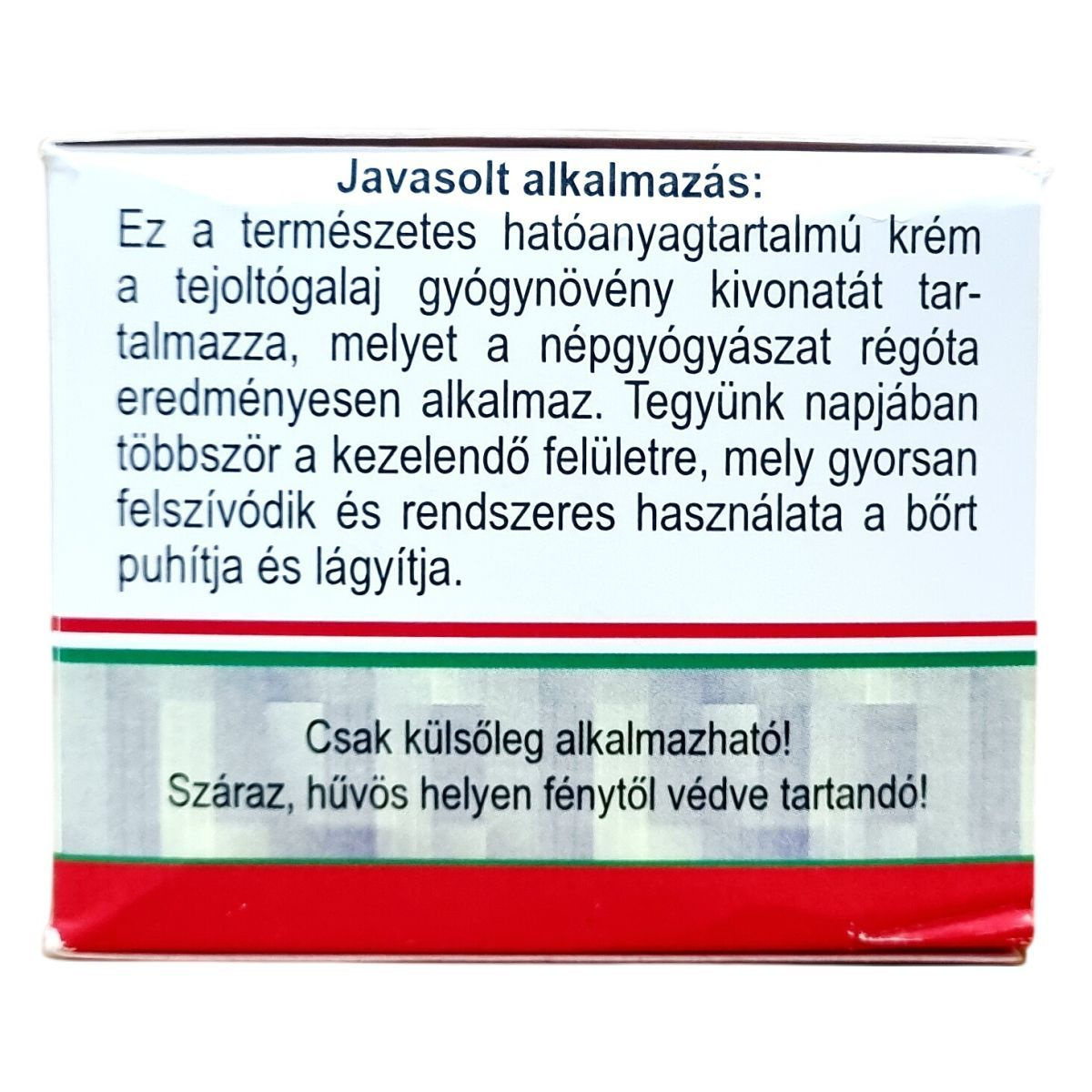 A tejoltógalaj gyógynövény kivonatát tartalmazó krém a népgyógyászat régóta ismert gyógynövényeiből készült. Hatékonyan kezelhet sebeket, fekélyeket, mellcsomókat és nyirokcsomókat, emellett bőrbarát, puhító hatású, melyet természetgyógyászok ajánlanak. Nettó ml mennyiségben kapható, minőségét 2 évig megőrzi.