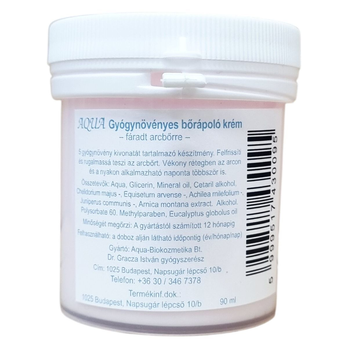 Ez a gyógynövényes krém frissítő és bőrfeszesítő hatású, kifejezetten fáradt arcbőrre fejlesztve, napi többszöri használatra.